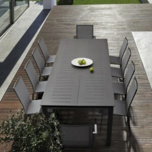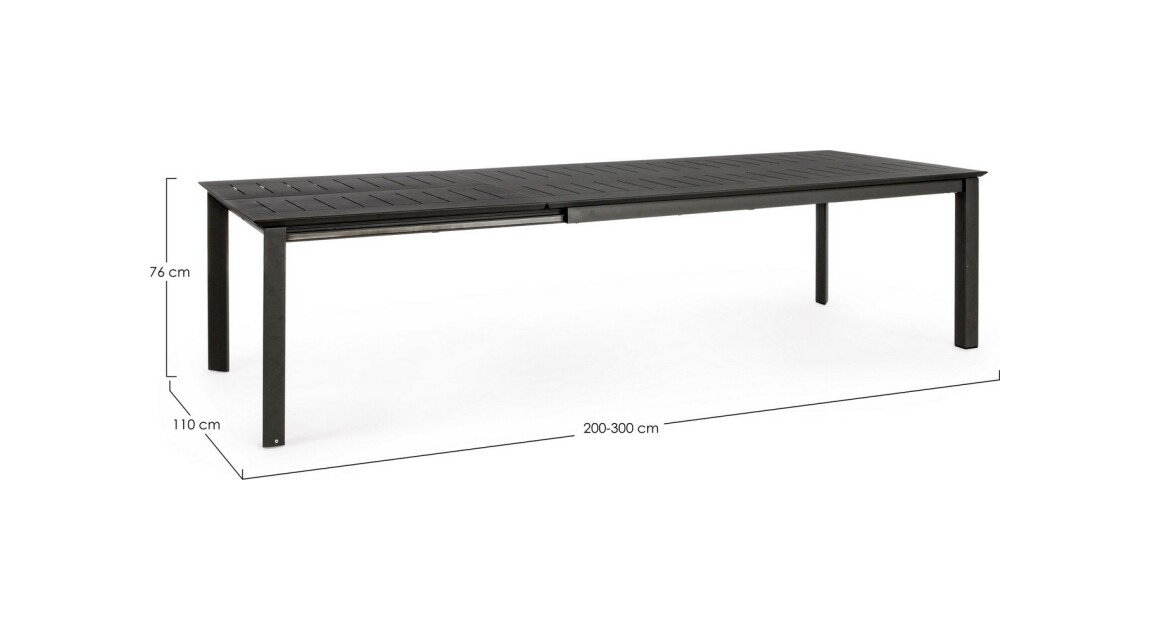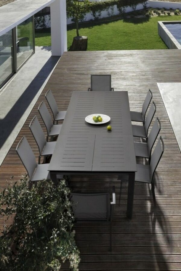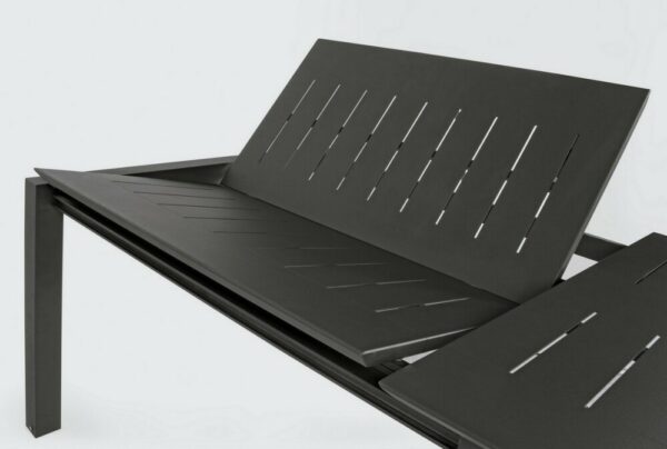 Die einfachen und essentiellen Linien definieren die Form des Tisches, der bei Bedarf dank der Teleskopöffnung, mit der er ausgestattet ist, Platz für bis zu 10 Personen bietet.