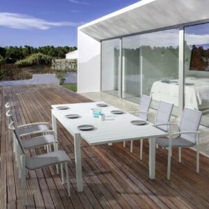 Die einfachen und essentiellen Linien definieren die Form des Tisches, der bei Bedarf Platz für bis zu 10 Personen bietet.
