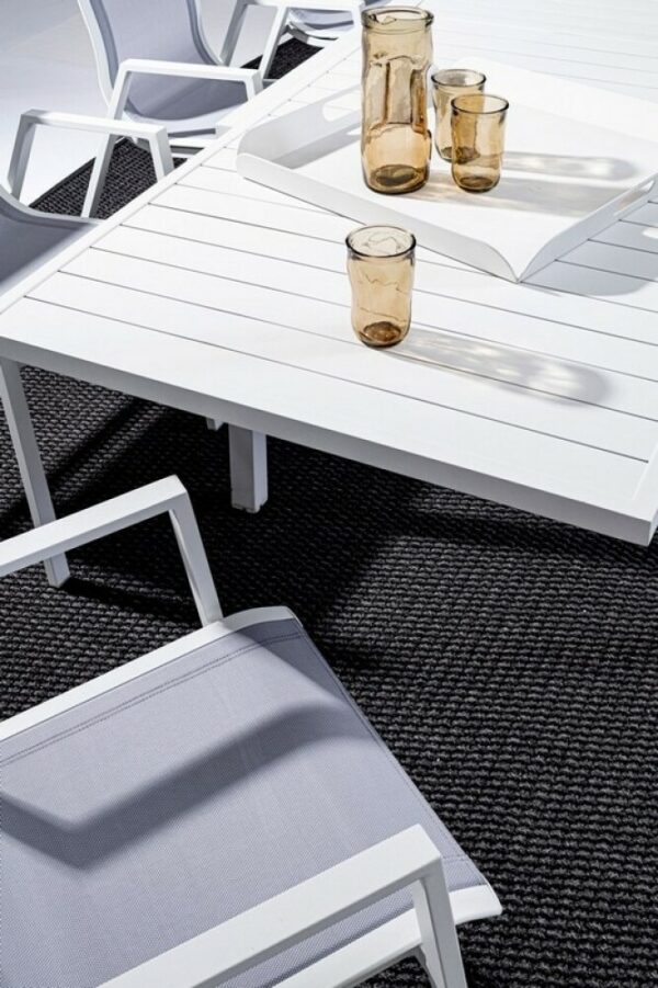 Die Struktur besteht komplett aus weiß lackiertem Aluminium.