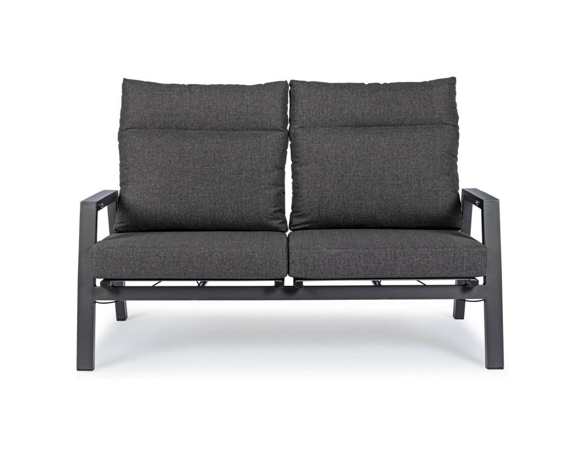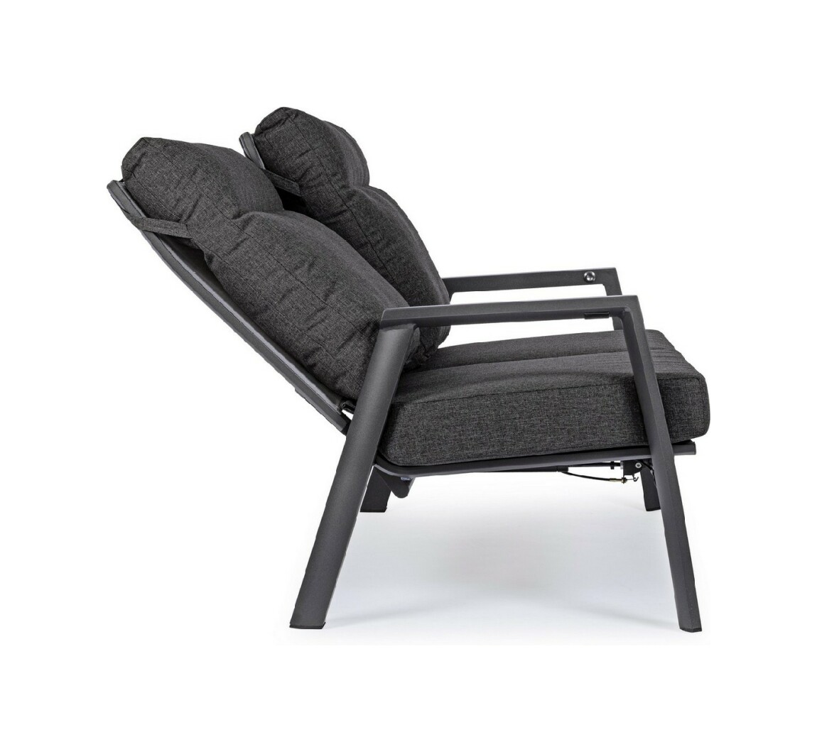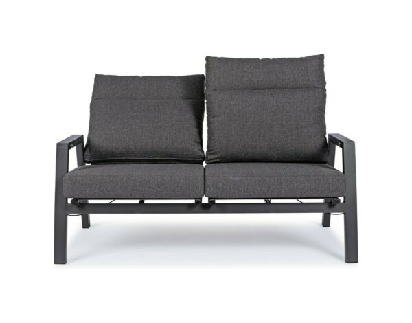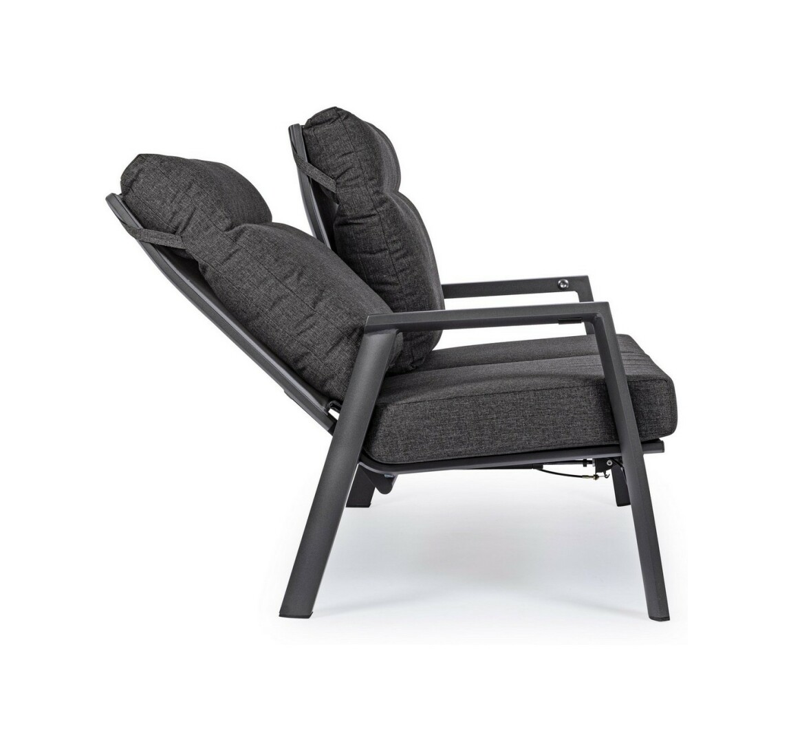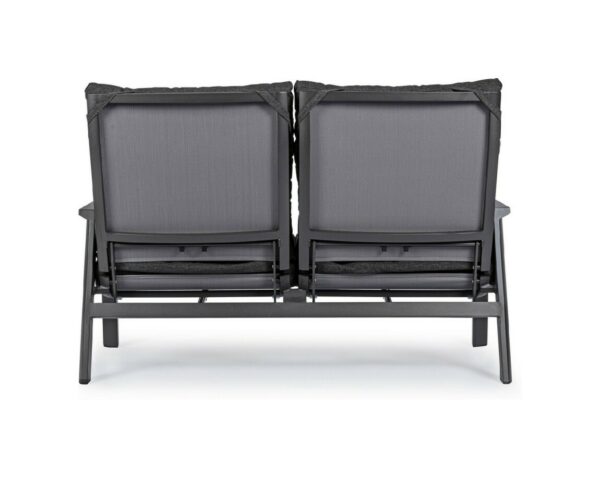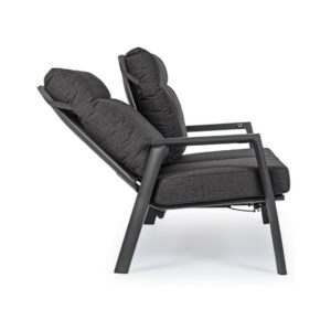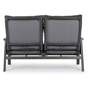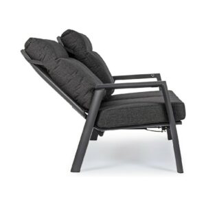Kledi von Bizzotto ist ein Zweisitzer- Liegesofa mit anthrazitfarbener pulverbeschichteter Aluminiumstruktur (Polyester).