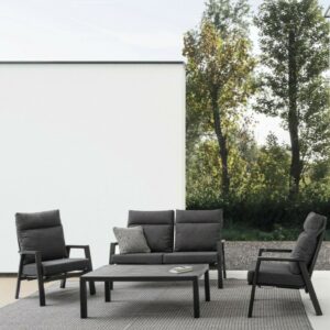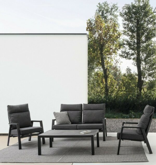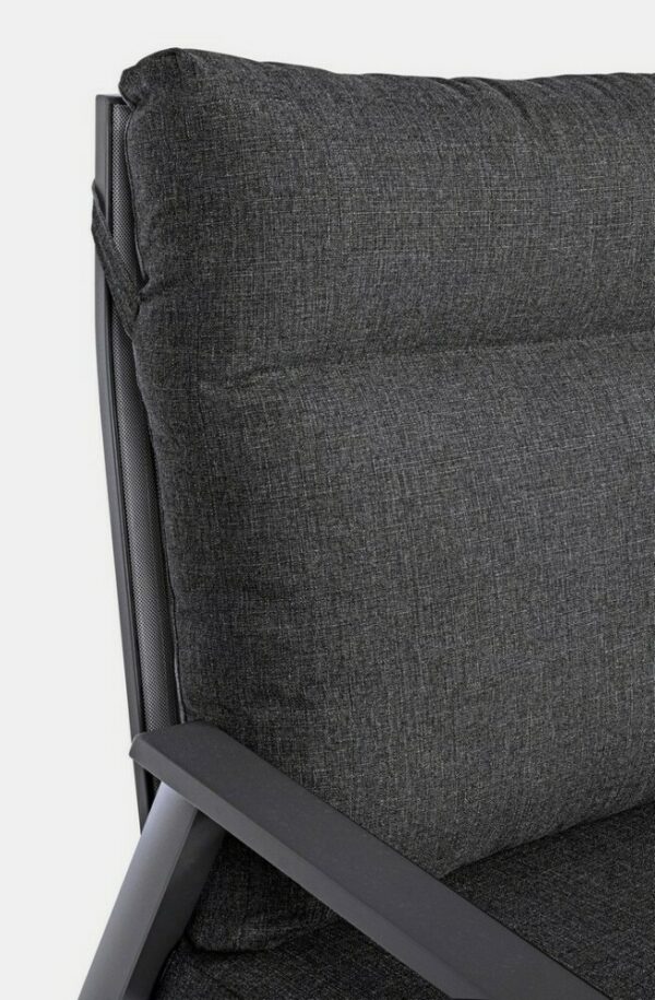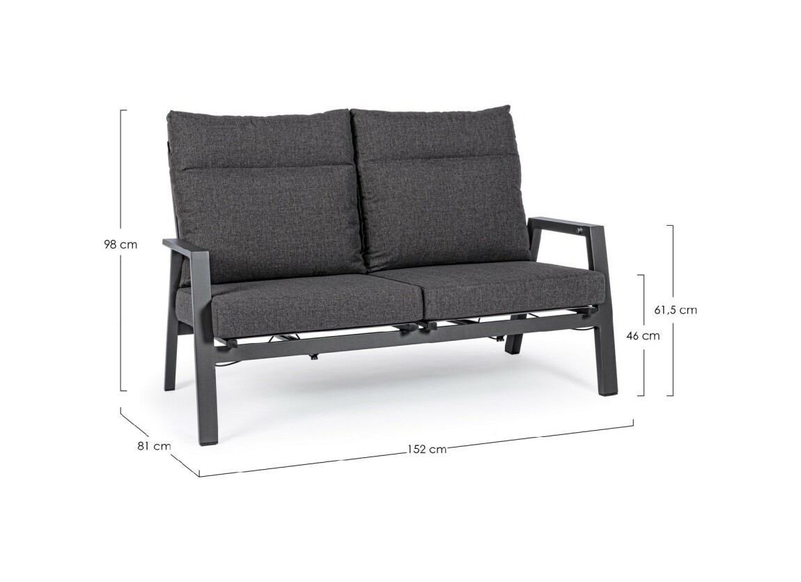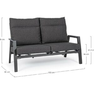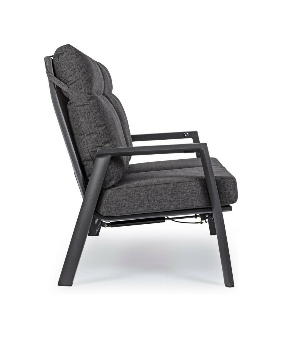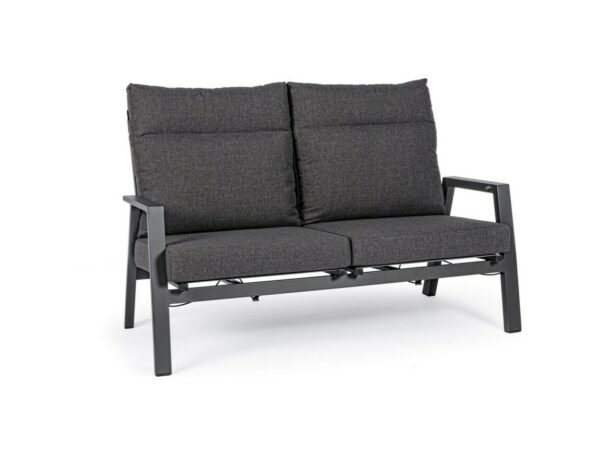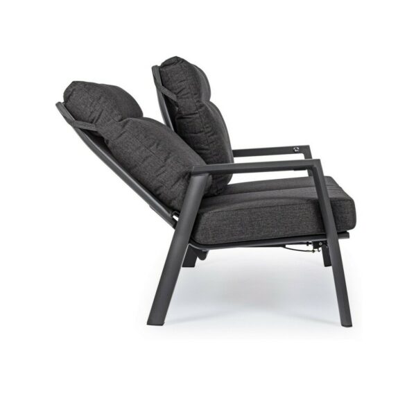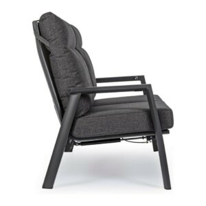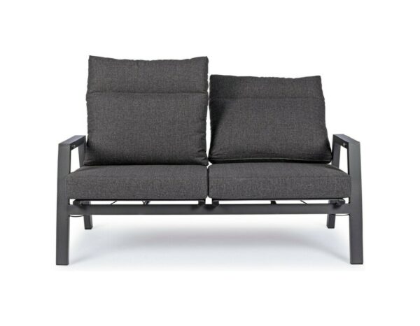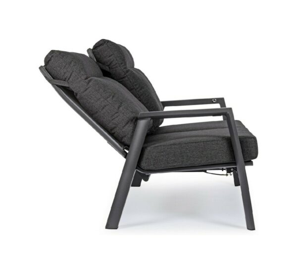 Kledi von Bizzotto ist ein Zweisitzer- Liegesofa mit anthrazitfarbener pulverbeschichteter Aluminiumstruktur (Polyester).