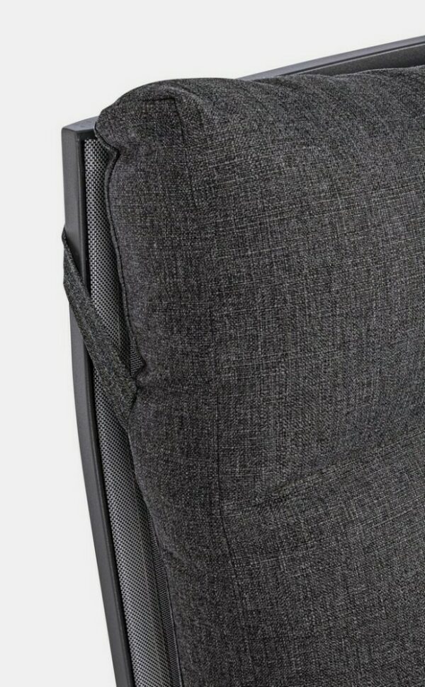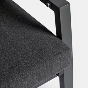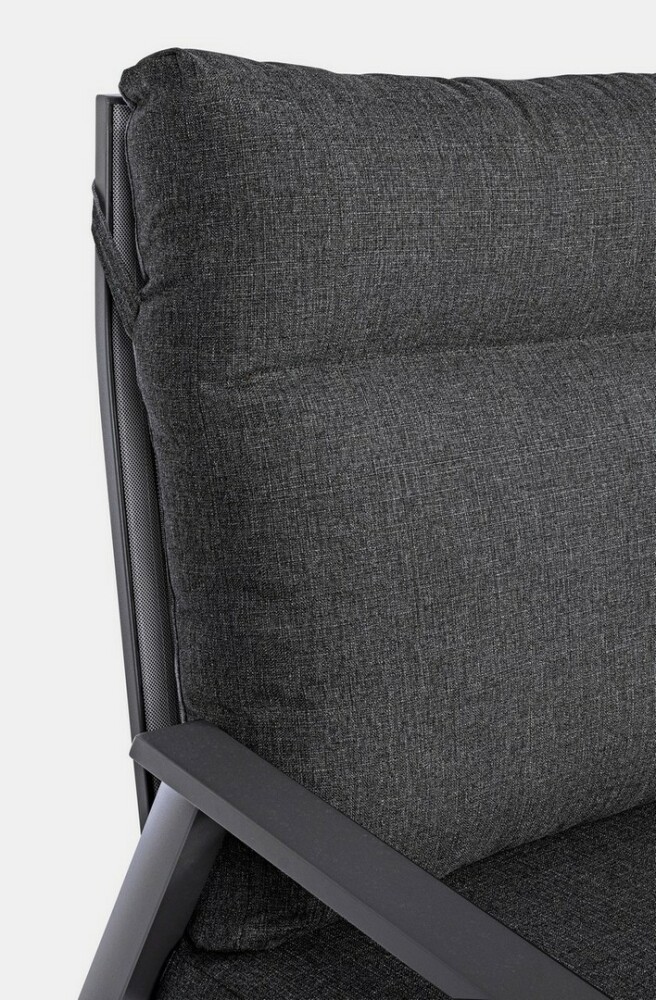 Der Sitz ist aus Textilene (1×1) und die Kissen mit abnehmbaren Bezügen sind aus Olefinstoff (100 % Polypropylen).