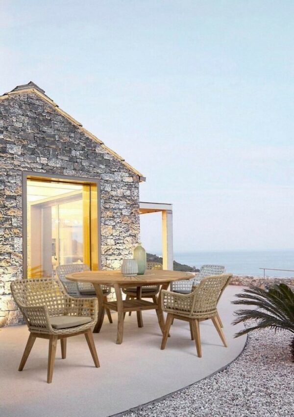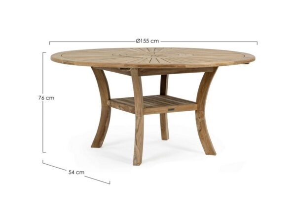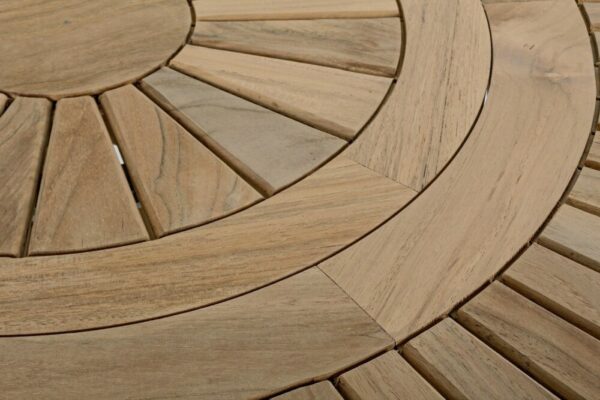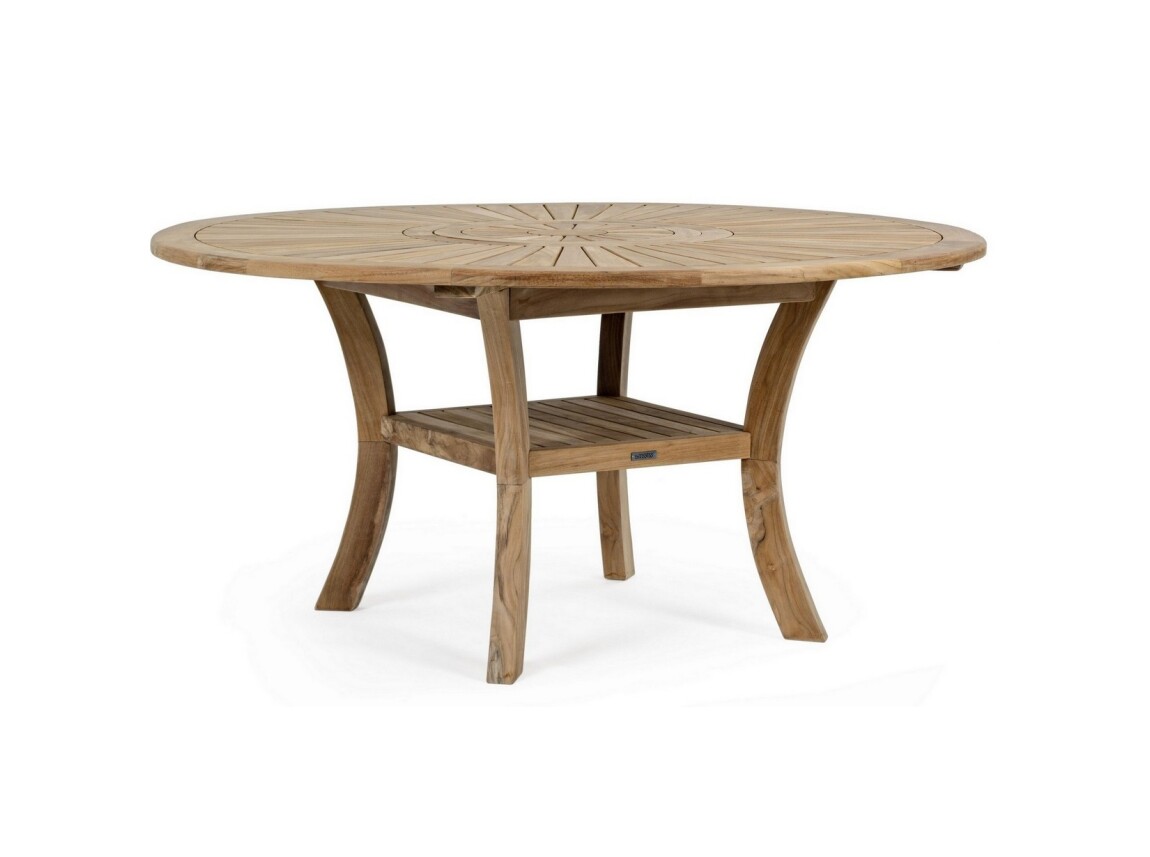 Maryland ist ein runder Tisch mit modernem Design aus Teakholz.