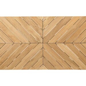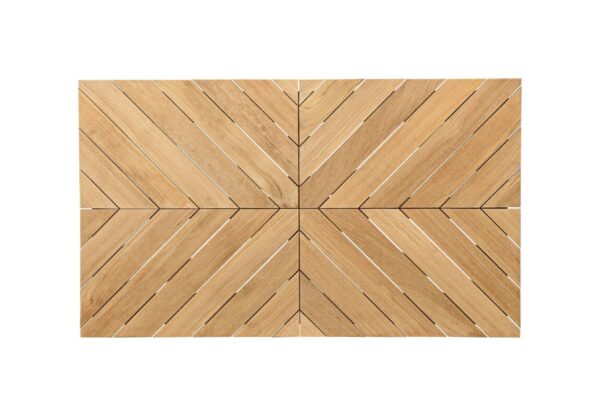 Die rechteckige Form verleiht dem Außenbereich dank des besonderen Fischgrätenmusters der Platte eine raffinierte Note in großer Schlichtheit.