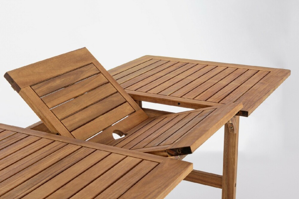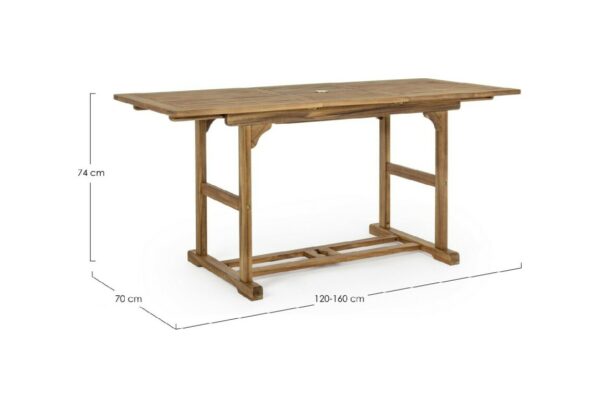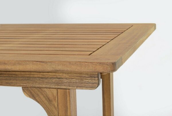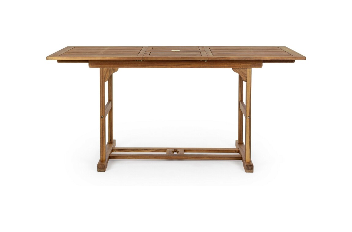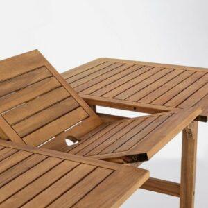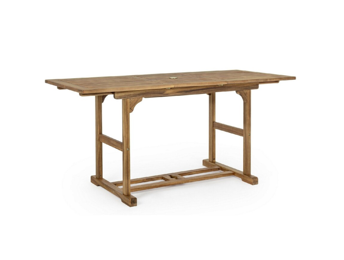 Noemi von Bizzotto Yes ist ein ausziehbarer rechteckiger Tisch , der vollständig aus geöltem Akazienholz gefertigt ist.