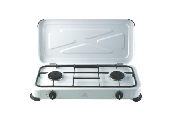 Der 2-Flammen-Gasherd DCG EKP2422 ist mit einer Staubschutzabdeckung ausgestattet, die es ermöglicht, ihn bei Nichtgebrauch abzudecken, um ihn immer sauber und funktionsfähig zu halten.