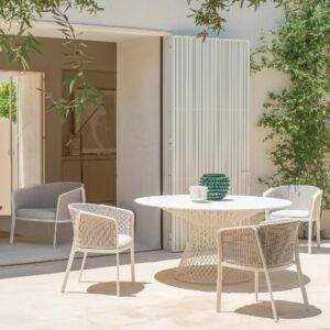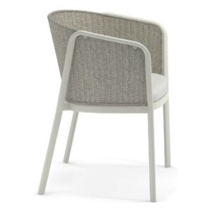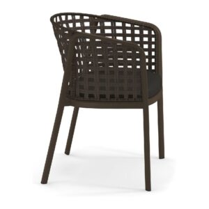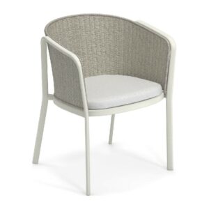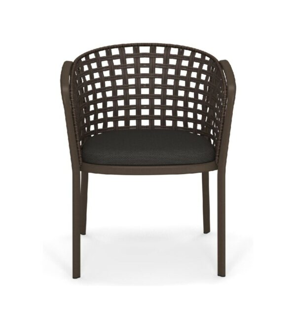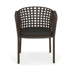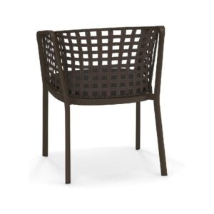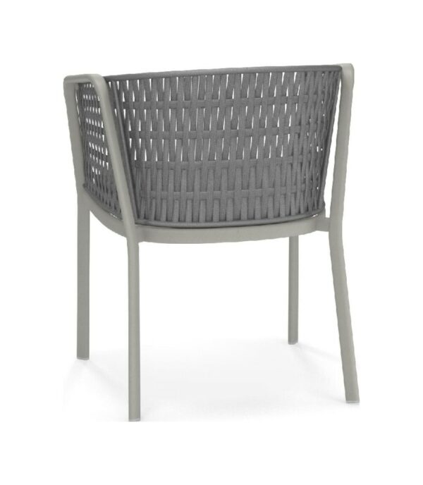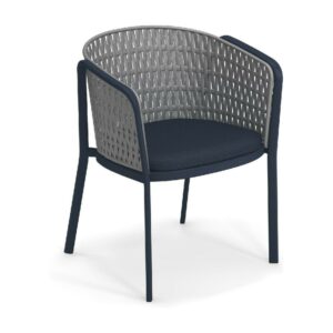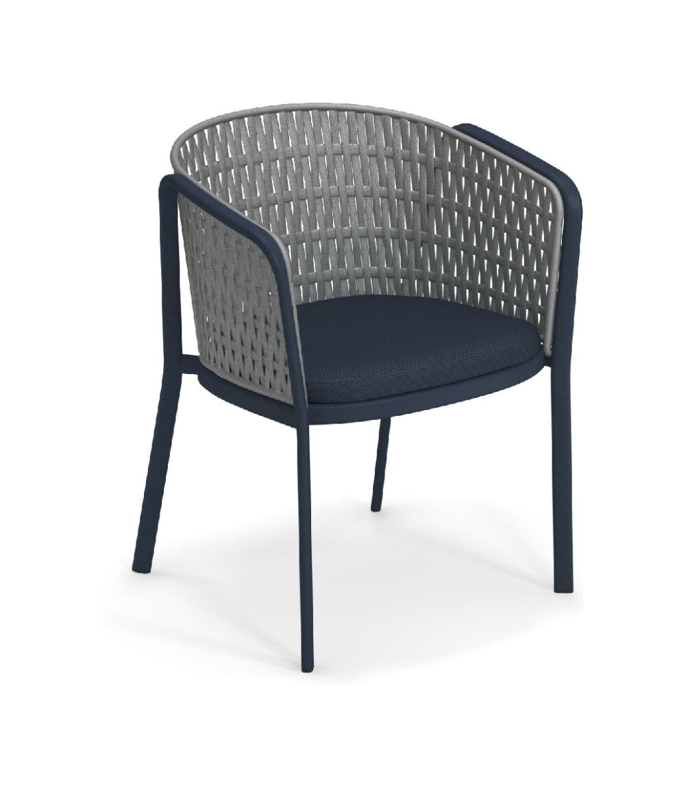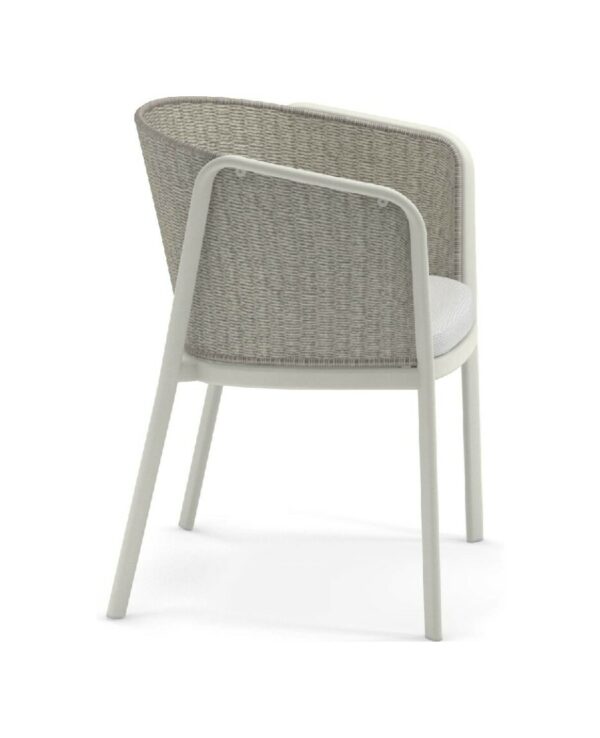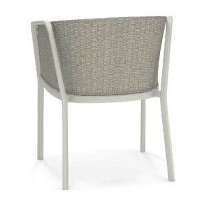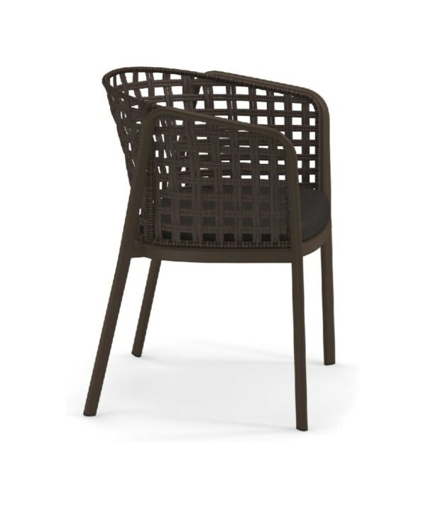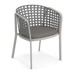 EMU CAROUSEL 1212/1213/1214 ist ein kleiner Sessel mit lackierter Aluminiumstruktur   und Rückenlehne mit Stahlstruktur, auf der dekorative Geflechte aus wasserabweisendem Synthetikseil in dichter, quadratischer oder flacher Webart angebracht sind.