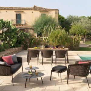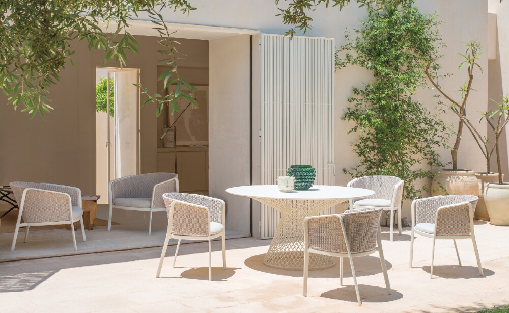 Sessel EMU 1212/1213/1214 aus der CAROUSEL-Linie, hergestellt aus Materialien, die Widerstandsfähigkeit und Farbstabilität garantieren; Da es wasserabweisend ist, eignet es sich besonders für alle Einsätze in Meeresumgebungen und unter extremen klimatischen Bedingungen.