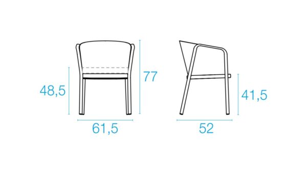 ABMESSUNGEN DES SESSELS CAROUSEL 1213 mit quadratischer Rückenlehne aus geflochtenem Seil