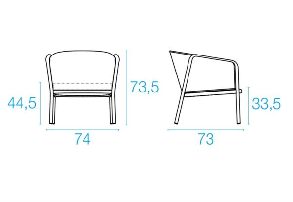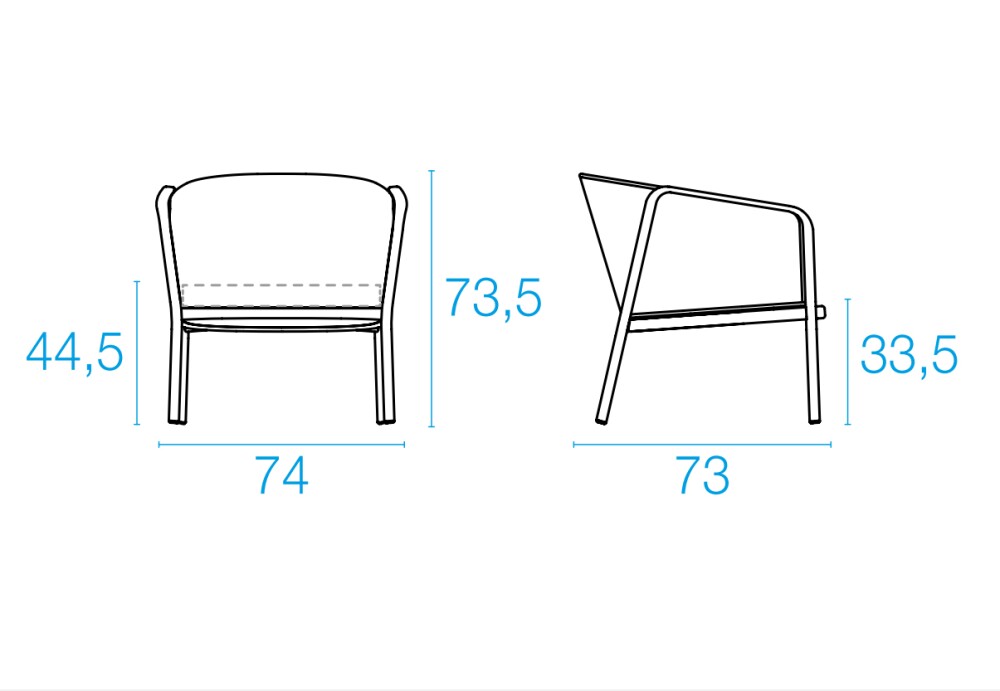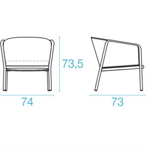 ABMESSUNGEN DES SESSELS CAROUSEL 1218 mit Rückenlehne aus flachem Seil