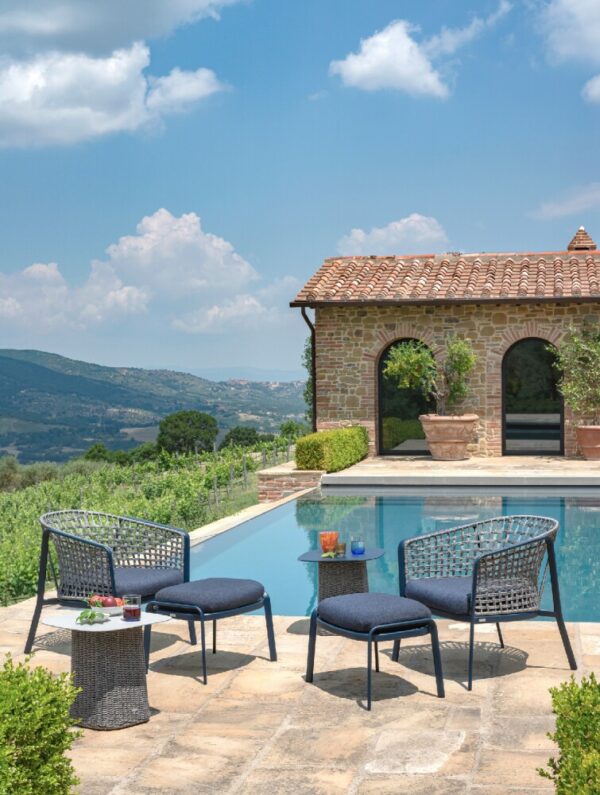 EMU CAROUSEL 1222 ist ein Sitzpuff mit lackierter Aluminiumstruktur und Sitzkissen in verschiedenen Stoffen und Ausführungen erhältlich. Es kann mit anderen Artikeln aus der Carousel-Kollektion bestehend aus Sofa, Sessel, Sessel und Couchtisch kombiniert werden.