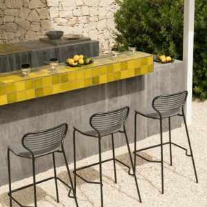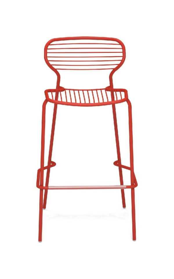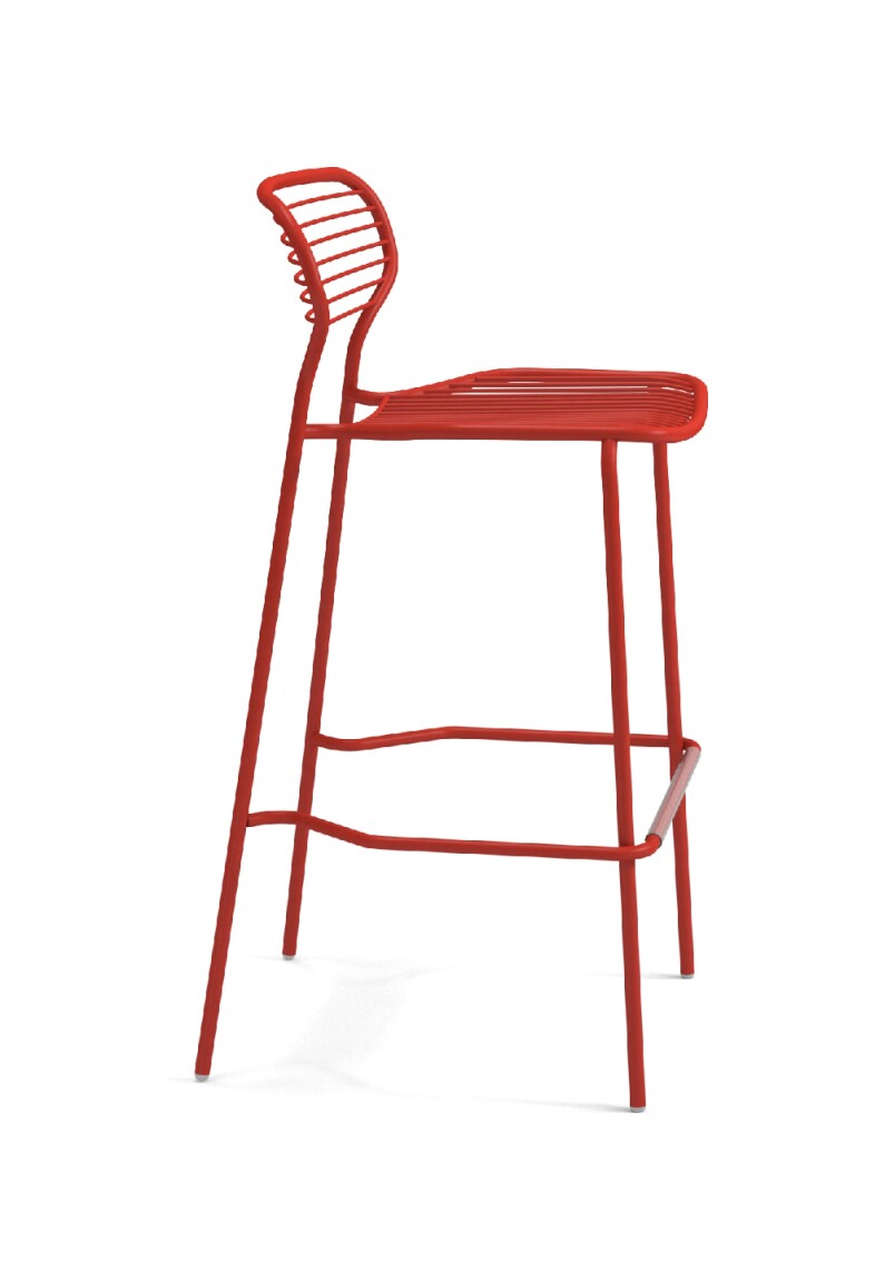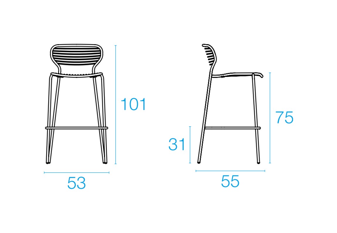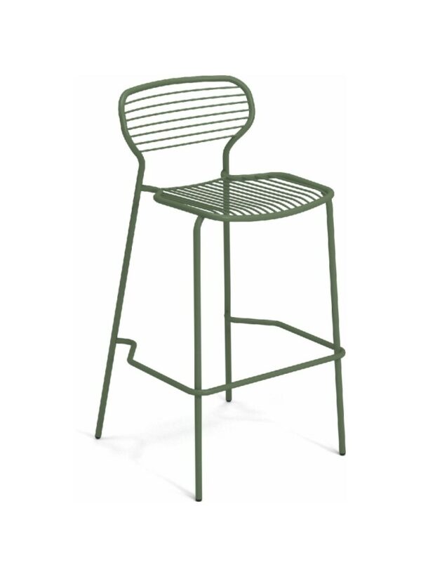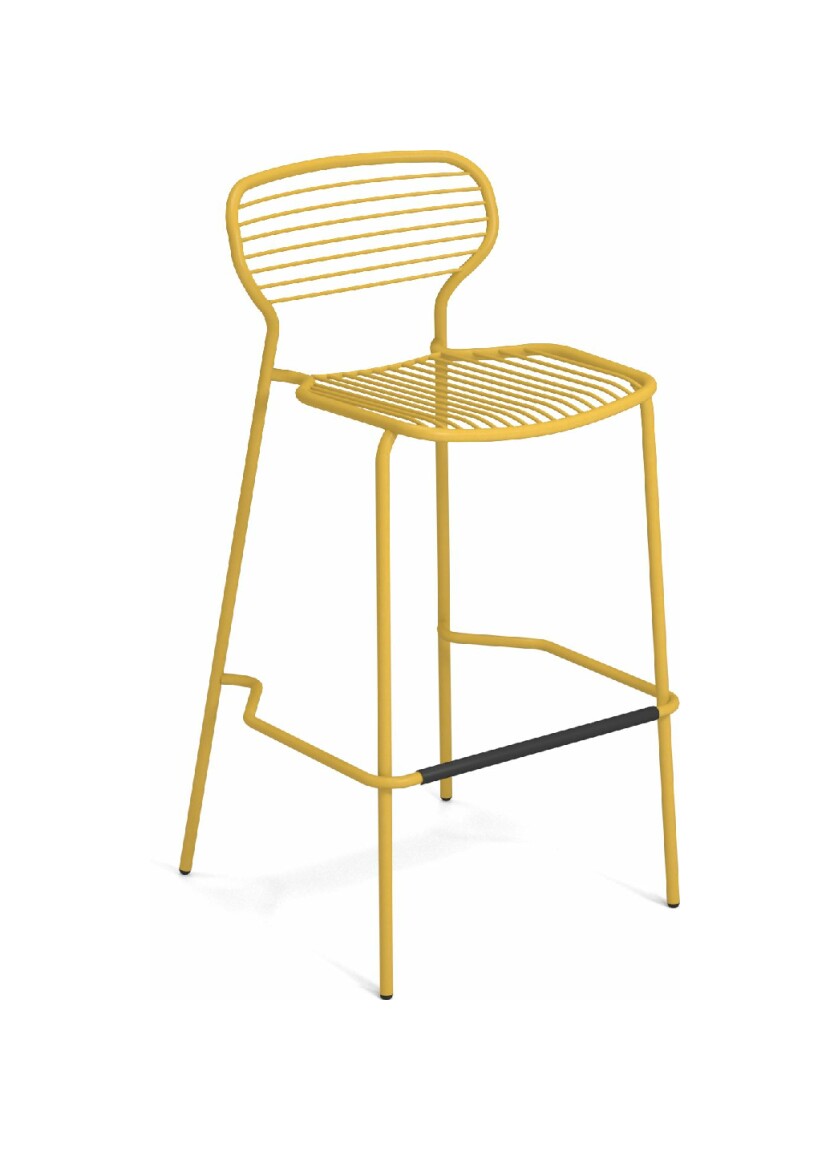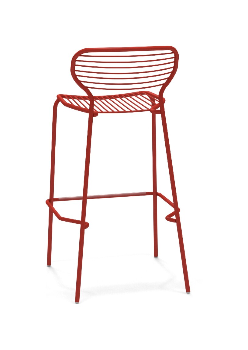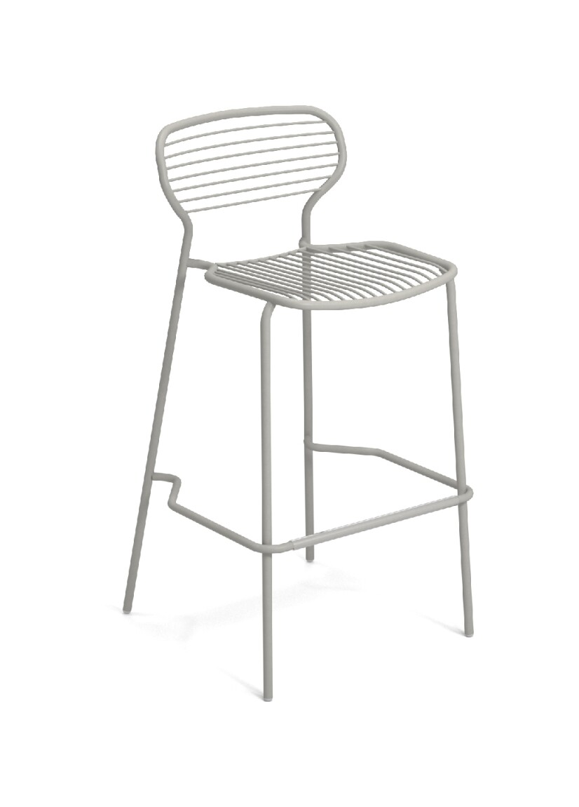 Beim Hocker APERO 1303 sorgen Sitz und Rückenlehne aus Stahlrohr dank des EMU-Know-hows in der Metallbearbeitung für optische Leichtigkeit. Die Silhouette erscheint kontinuierlich und dünn, in einem Lichtspiel zwischen horizontalen und vertikalen Linien, das ein unerwartetes Karomuster auf die Flächen projiziert. Sein minimalistisches und grafisches Erscheinungsbild ermöglicht es ihm, sich an jede Art von Umgebung und Stil anzupassen und auf alle funktionalen Anforderungen einzugehen. Die Kollektion besteht aus Stuhl, Sessel und Hocker. Der Hocker ist bis zu 2 Einheiten stapelbar.