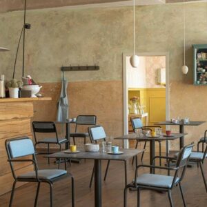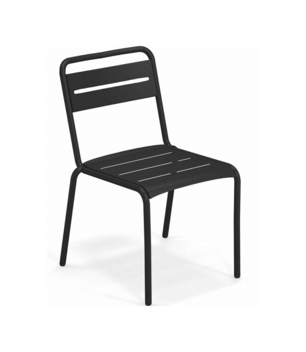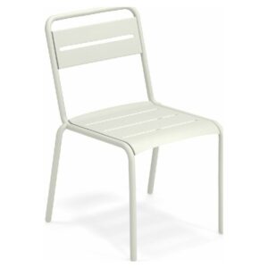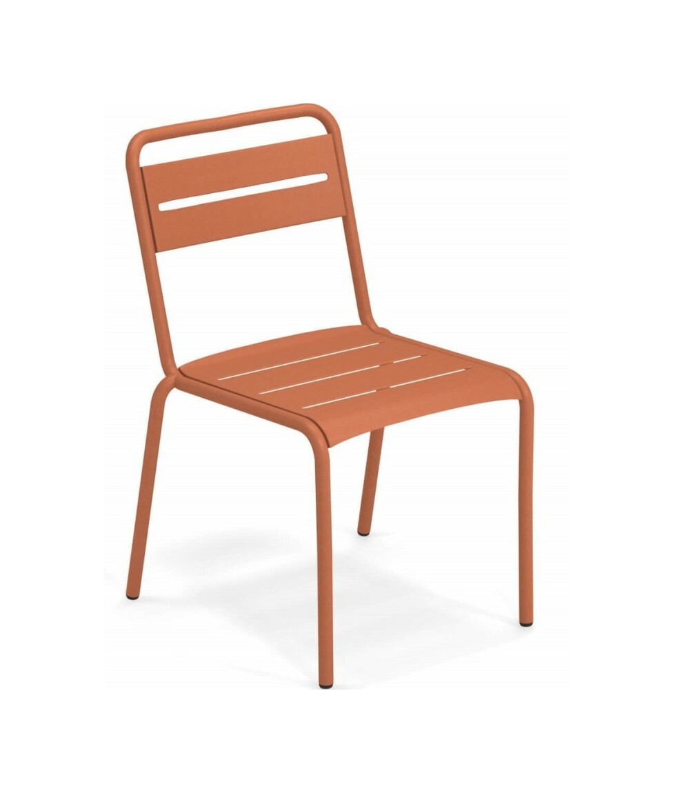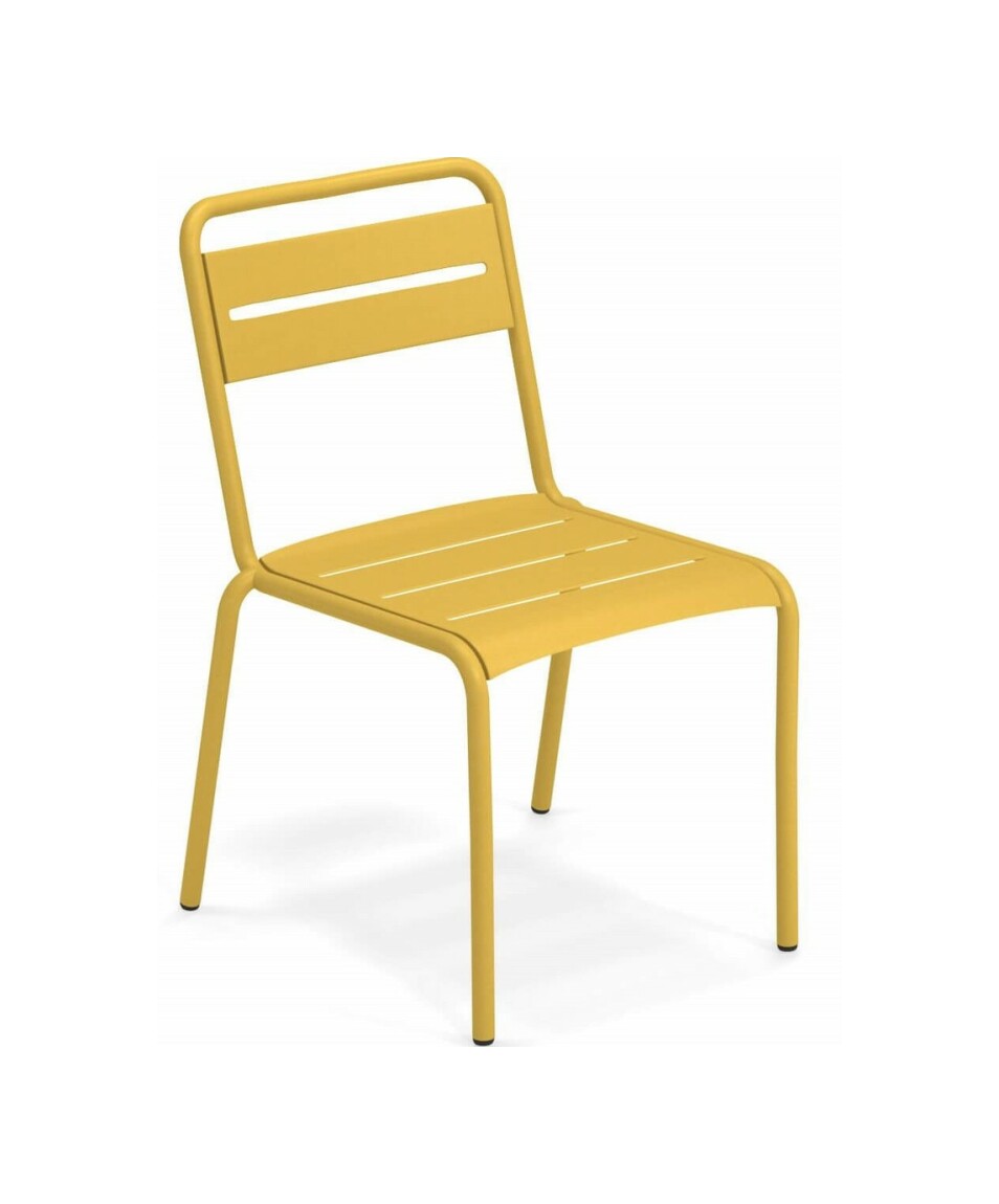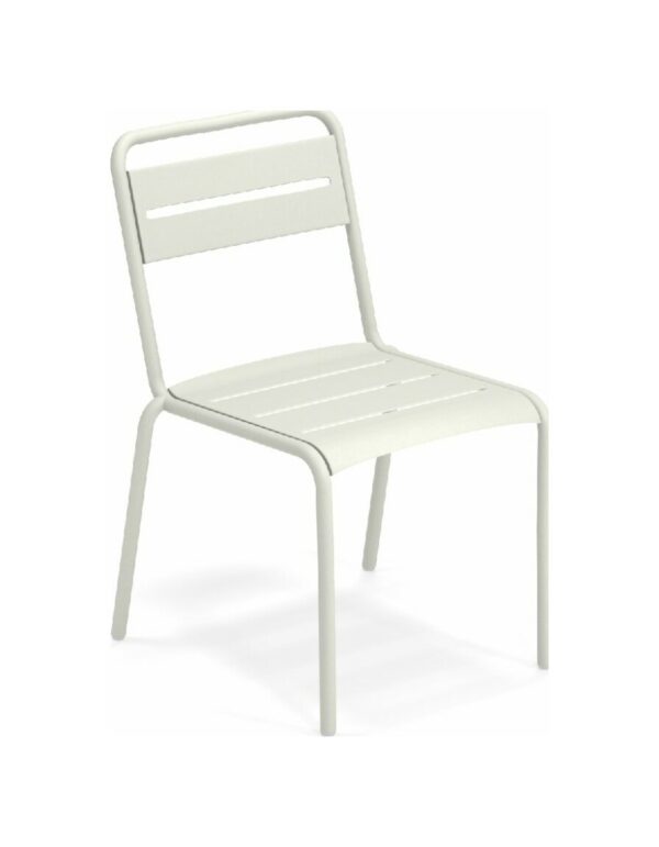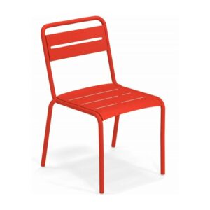 EMU STAR 1361/1362 ist ein farbenfroher und informeller Stuhl mit einer bequemen und breiten Sitzfläche . Die Struktur besteht aus einer Aluminiumlegierung , die innen mit verzinkten Stahlrohren verstärkt ist . Die Formgebung erfolgt mithilfe einer Form für mehr Komfort.