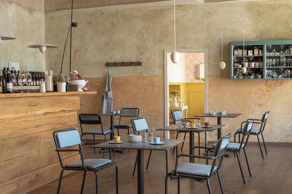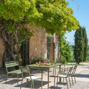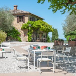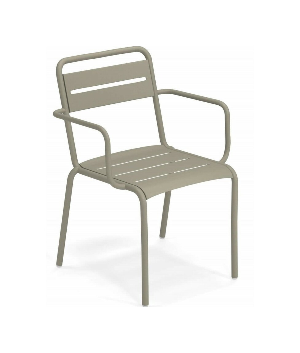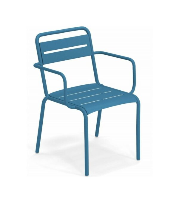 Star ist eine sehr farbenfrohe und informelle Kollektion. Die Sitze sind groß und bequem und in Versionen mit oder ohne Armlehnen erhältlich. Die Tische sind in verschiedenen Größen erhältlich und sowohl in quadratischer als auch in rechteckiger Ausführung erhältlich. Sie verfügen über eine Tischplatte aus feuerverzinktem Blech, die durch eine zusätzliche Metallstruktur unter der Kante verstärkt ist. Die Kollektion besteht aus Stuhl, Bank, Sessel, Hochhocker, Sessel, Sofa und Tischen. Star ist eine Kollektion, die in zahlreiche Außen-, Privat- und Objektkontexte passt und sich sowohl in große als auch in kleine Räume gut einfügt. Schließlich präsentiert die Star-Kollektion Stuhl und Sessel in einem neuen Look, komplett aus Aluminium, was sie perfekt für maritime Umgebungen macht.