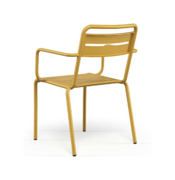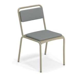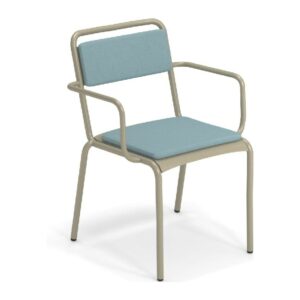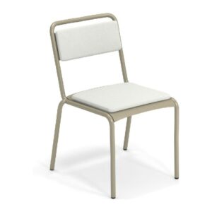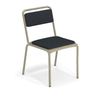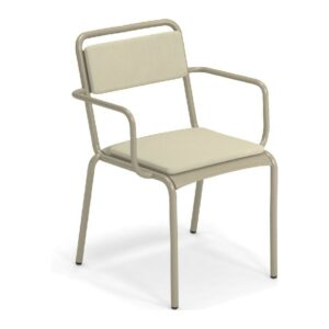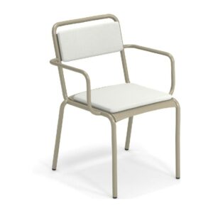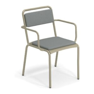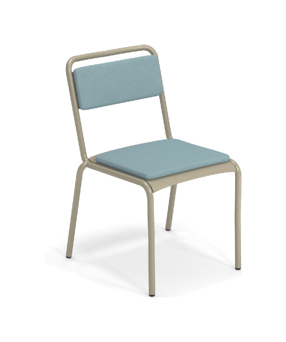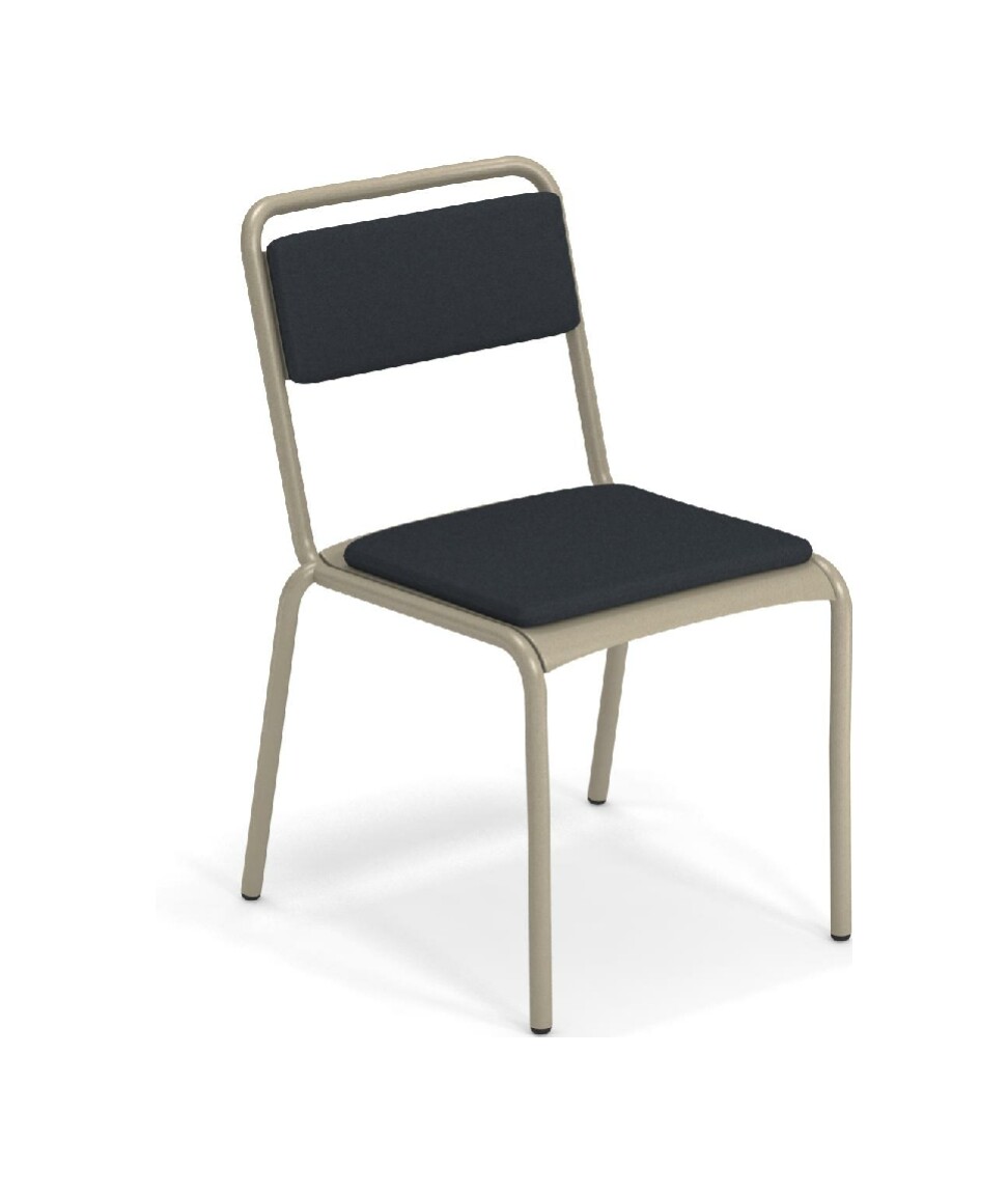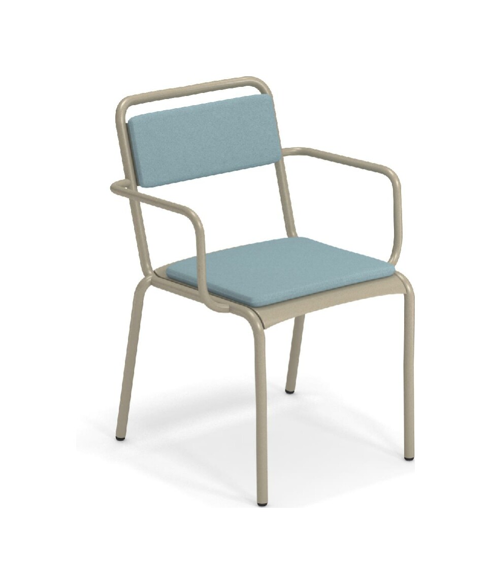 Der Stuhl ist mit oder ohne Armlehnen , optionalem Kissen erhältlich und bis zu 8 Einheiten stapelbar.