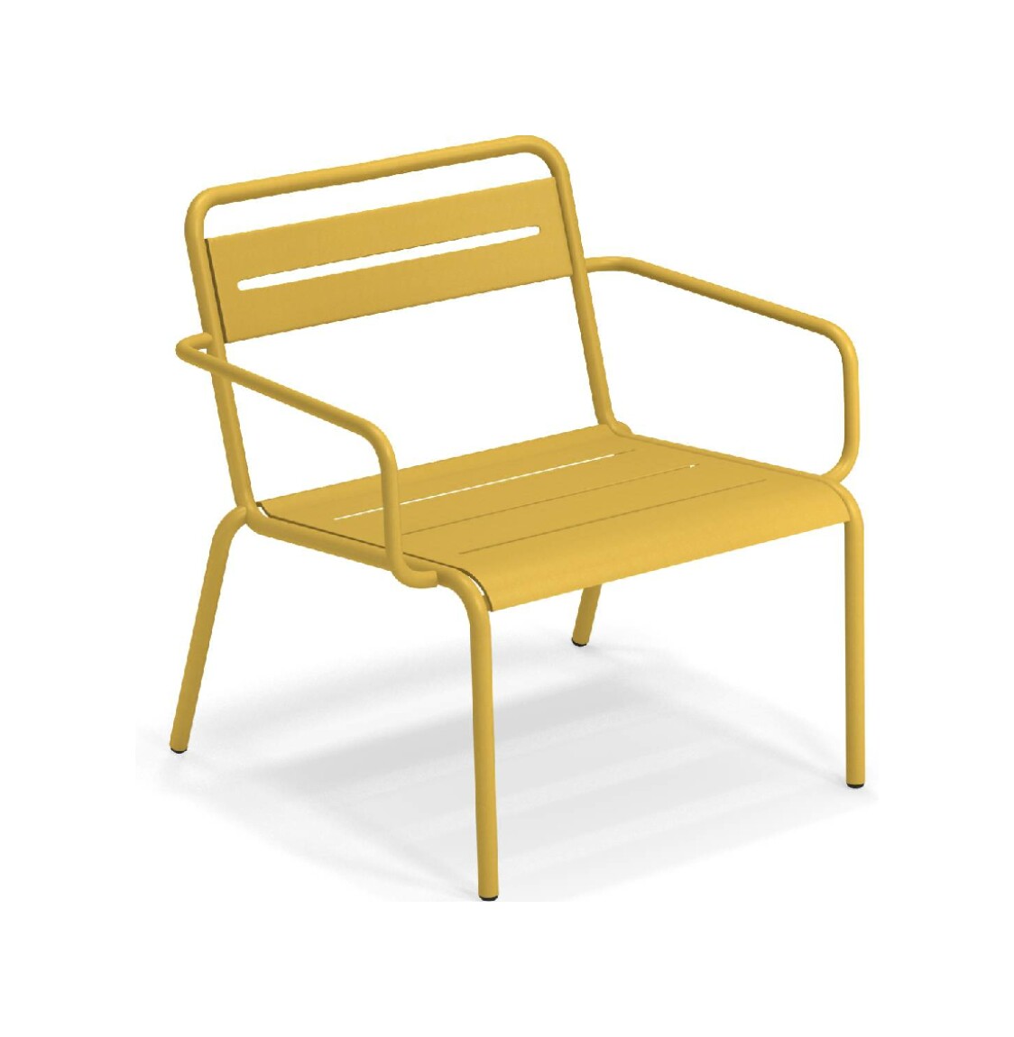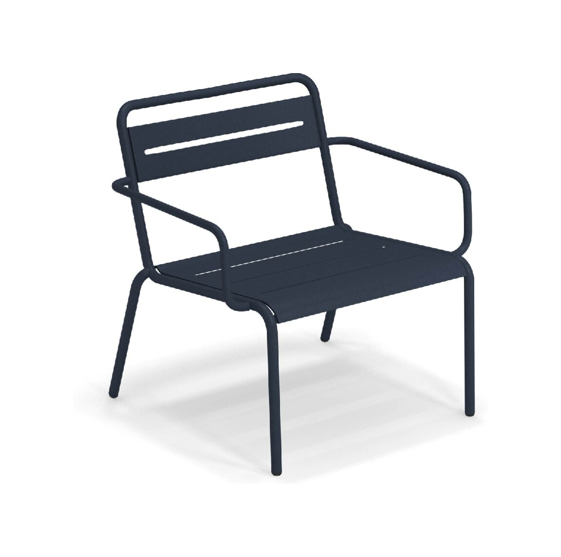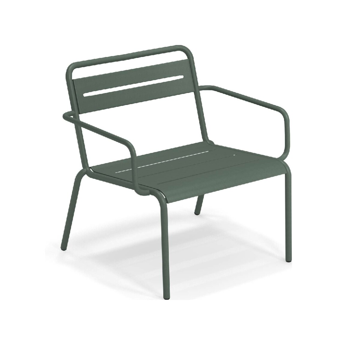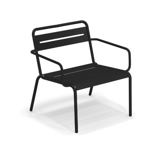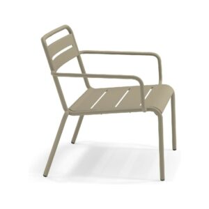 EMU STAR 1363 ist ein farbenfroher und informeller Sessel mit Armlehnen und einer bequemen und breiten Sitzfläche . Die Struktur besteht aus einer Aluminiumlegierung , die innen mit verzinkten Stahlrohren verstärkt ist . Die Formgebung erfolgt mithilfe einer Form für mehr Komfort.