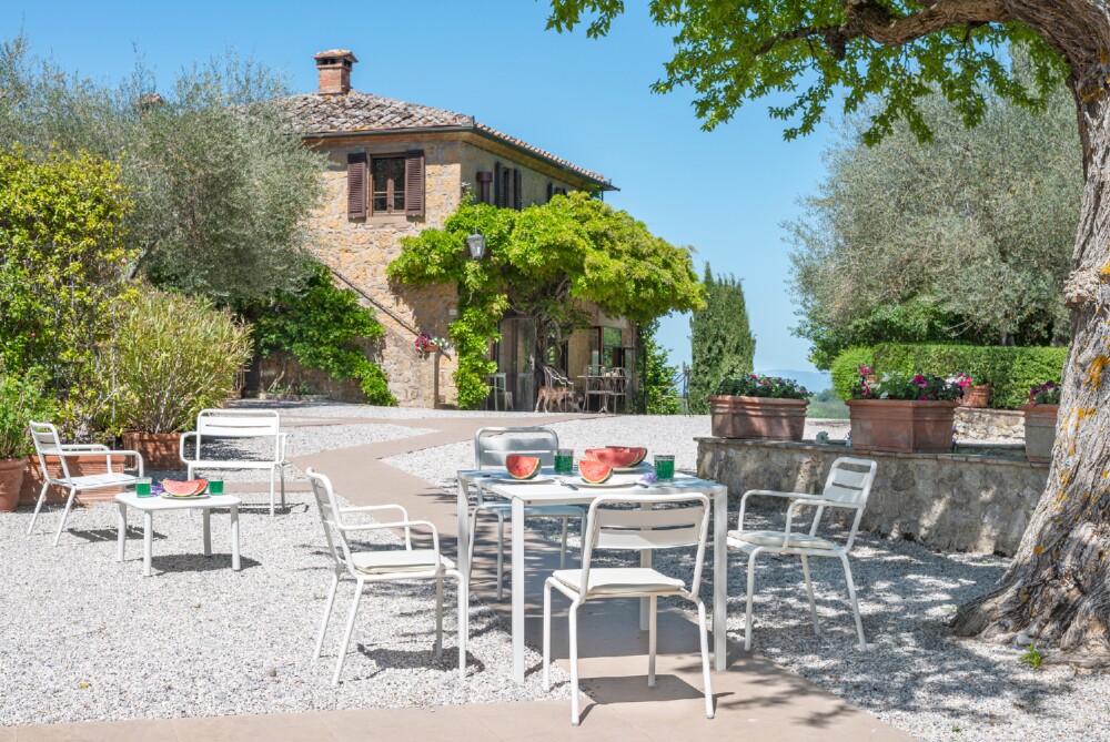 Star ist eine sehr farbenfrohe und informelle Kollektion. Die Sitze sind groß und bequem und in Versionen mit oder ohne Armlehnen erhältlich. Die Tische sind in verschiedenen Größen erhältlich und sowohl in quadratischer als auch in rechteckiger Ausführung erhältlich. Sie verfügen über eine Tischplatte aus feuerverzinktem Blech, die durch eine zusätzliche Metallstruktur unter der Kante verstärkt ist. Die Kollektion besteht aus Stuhl, Bank, Sessel, Hochhocker, Sessel, Sofa und Tischen. Star ist eine Kollektion, die in zahlreiche Außen-, Privat- und Objektkontexte passt und sich sowohl in große als auch in kleine Räume gut einfügt. Schließlich präsentiert die Star-Kollektion Stuhl und Sessel in einem neuen Look, komplett aus Aluminium, was sie perfekt für maritime Umgebungen macht.