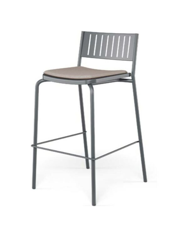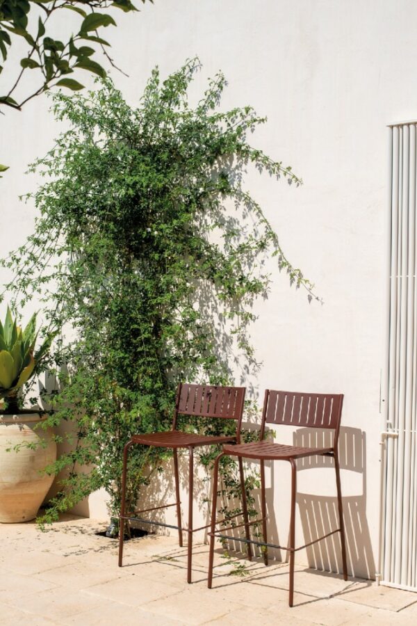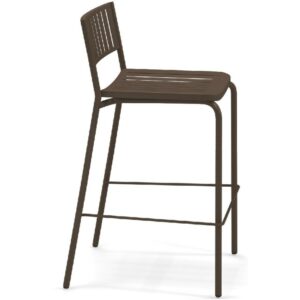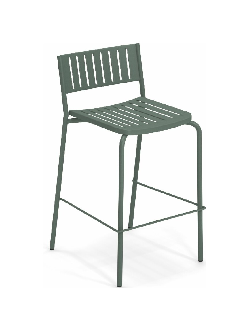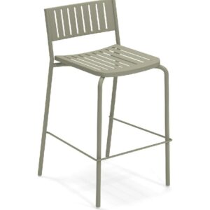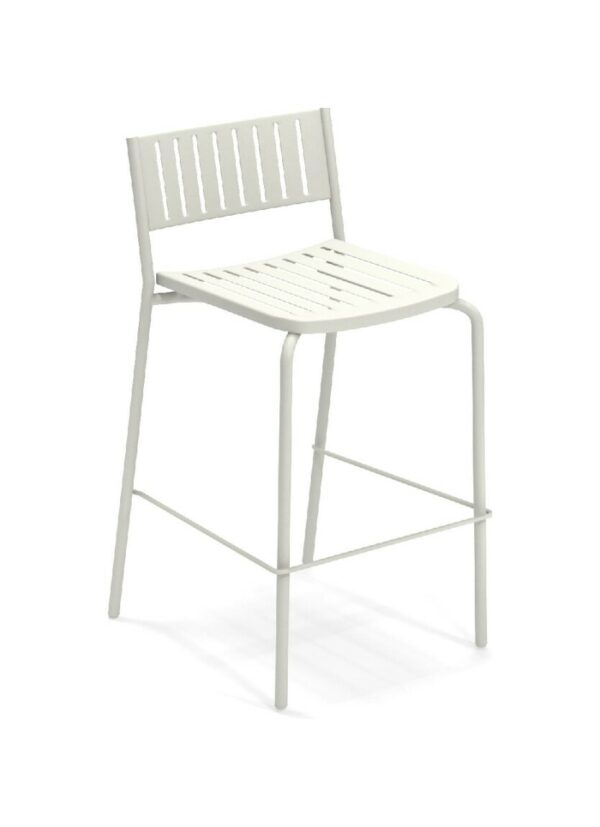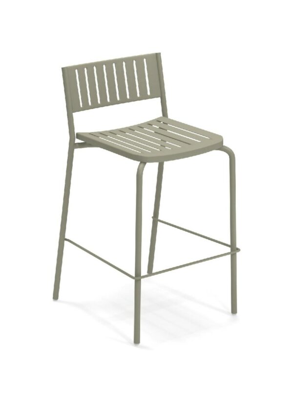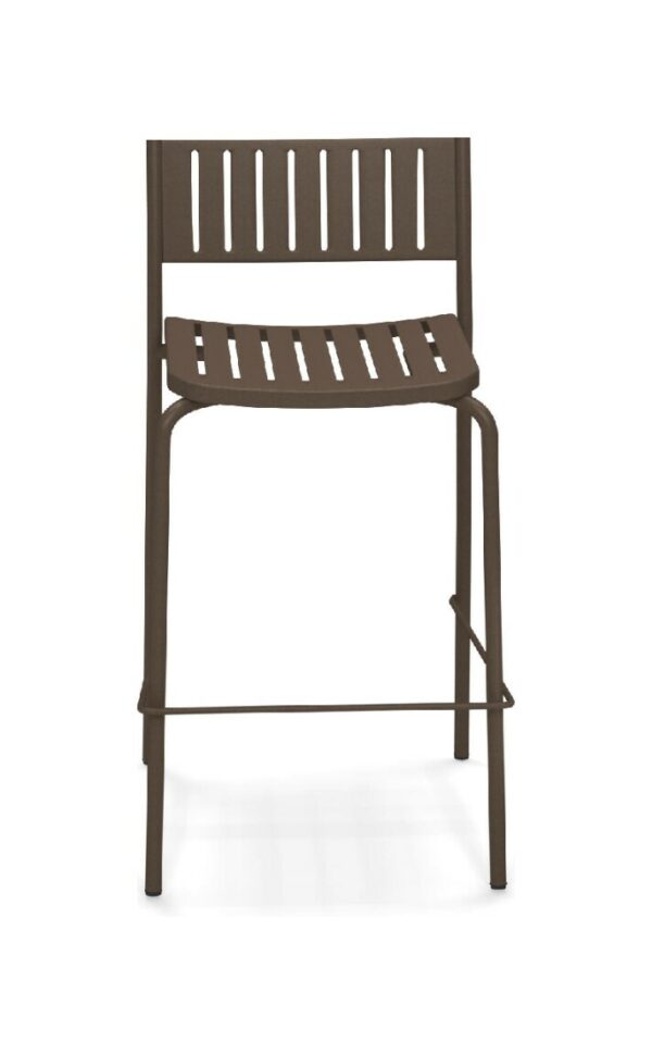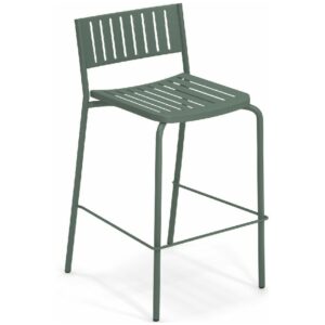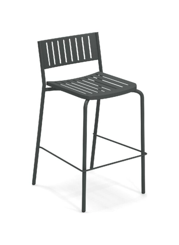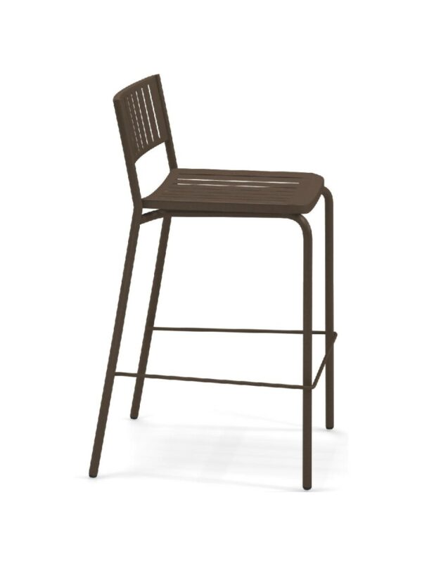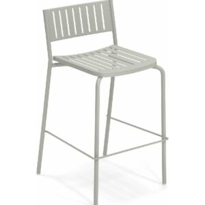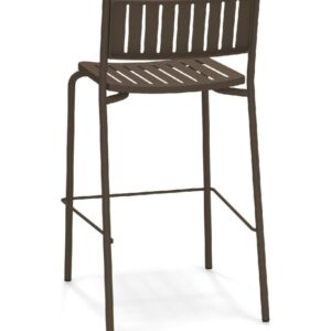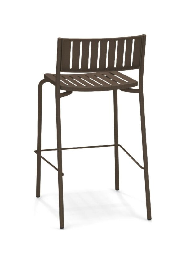 EMU BRIDGE 148 ist ein Hocker aus lackiertem Stahl mit Sitz und Rückenlehne aus lackiertem, vorfeuerverzinktem Blech. Der Stahl ist durch eine Kataphorese-Oberflächenbehandlung geschützt.