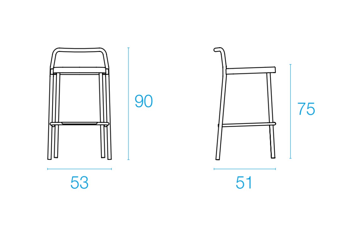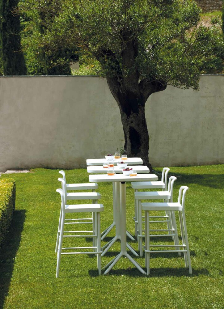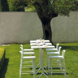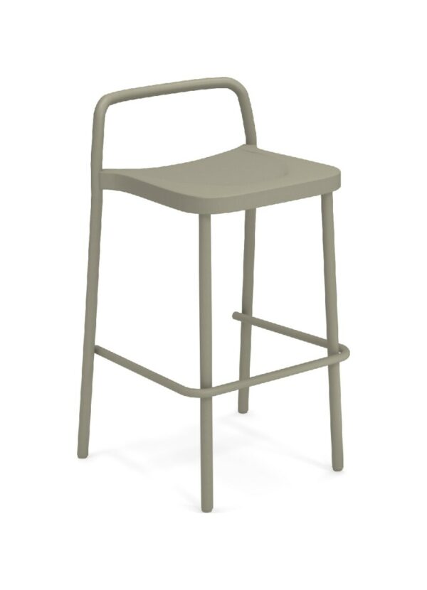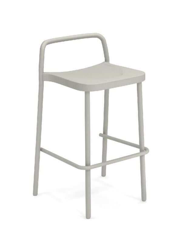 EMU GRACE 283 ist ein Hocker mit Struktur aus lackiertem Aluminium und Sitz und Rückenlehne aus lackiertem Aluminium-Druckguss. Mit exklusiven Formen verleiht der Sitz aus Aluminiumdruckguss der Kollektion exklusive Ergonomie .