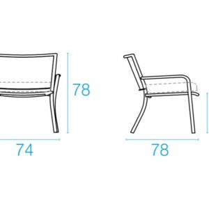 EMU ATHENA 3416 ist ein Sessel mit lackierter Stahlstruktur und Sitz und Rückenlehne aus lackiertem, feuerverzinktem Kunstblech , das für eine größere ästhetische Präzision durch Projektion geschweißt wird. Der Stahl wird durch eine Kataphorese-Oberflächenbehandlung geschützt.