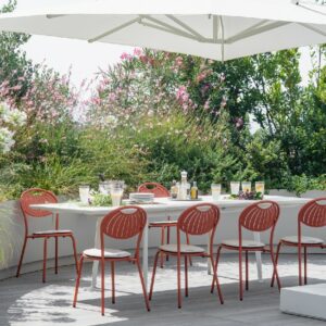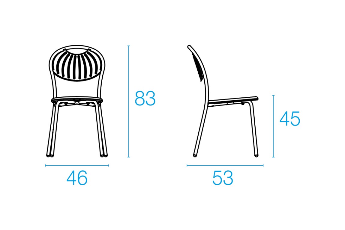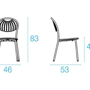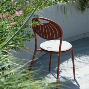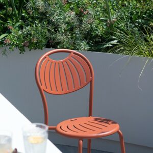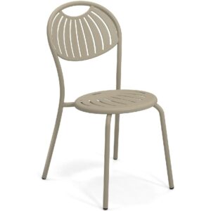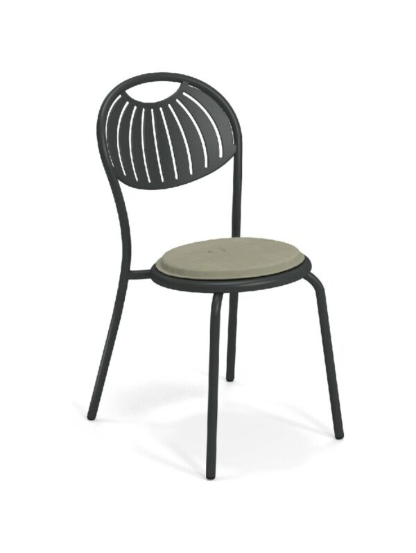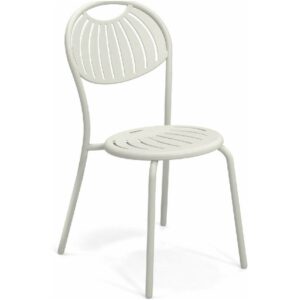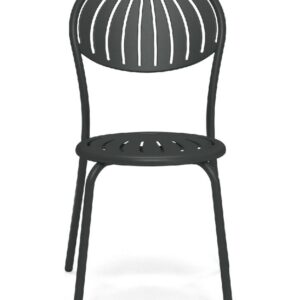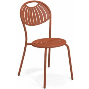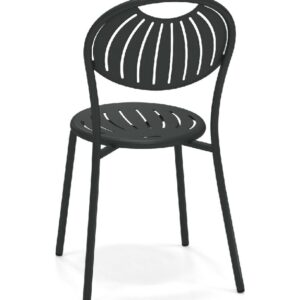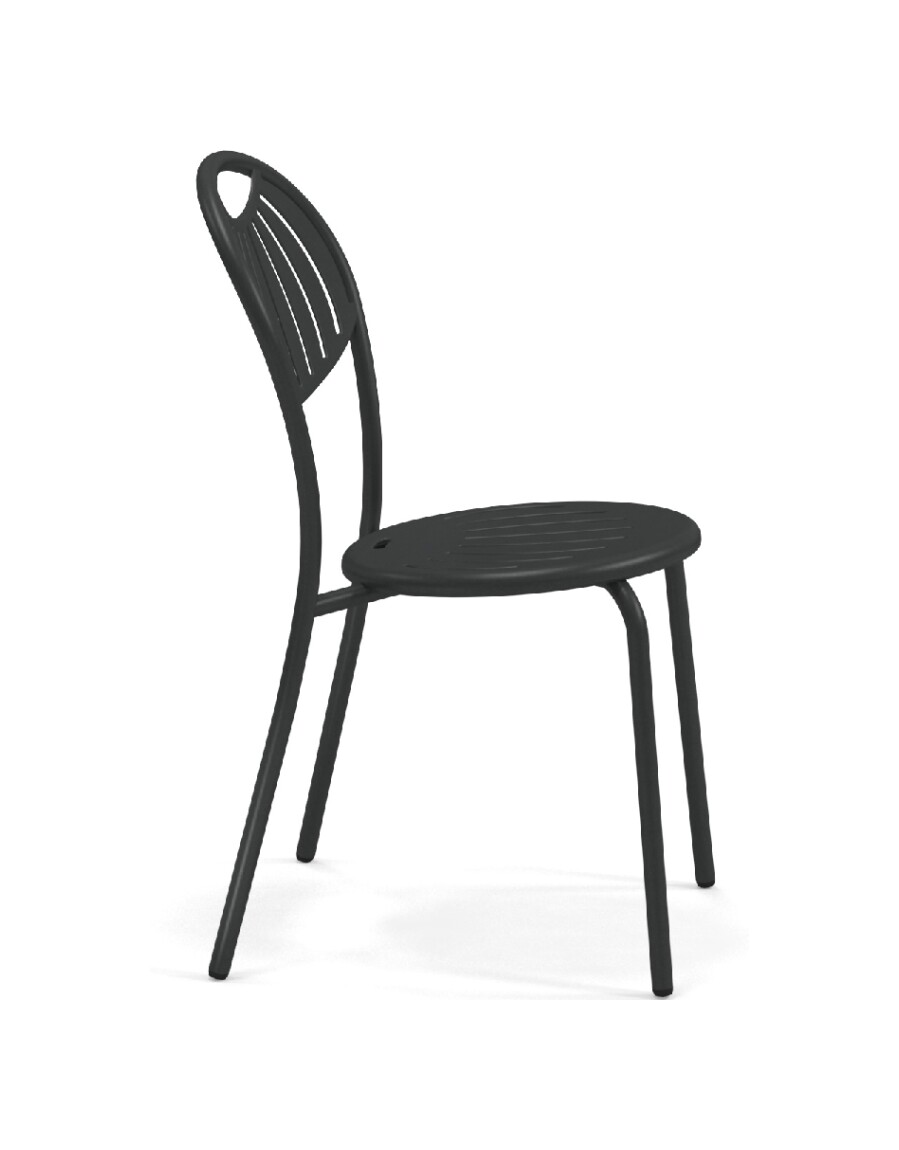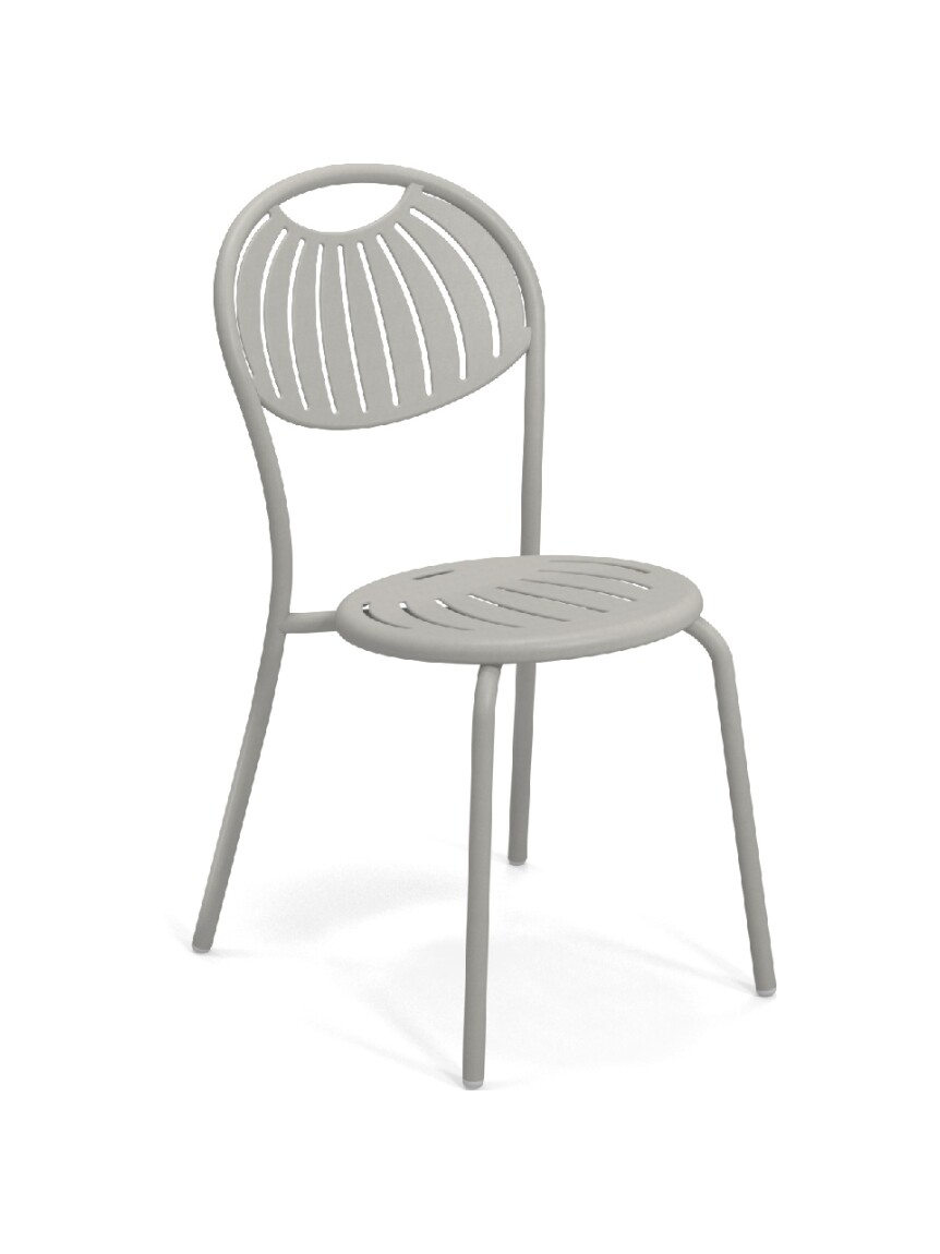 EMU COUPOLE 440 ist ein Stuhl mit lackierter Stahlstruktur , Sitz und Rückenlehne aus lackiertem, vorfeuerverzinktem Blech. Sie zeichnen sich durch ein geometrisches Muster aus Schlitzen aus, das dem Sitz ein leichtes Aussehen verleiht . Die abgerundete Rückenlehne garantiert besseren Komfort . Der Stahl ist durch eine Kataphorese- Oberflächenbehandlung geschützt .
