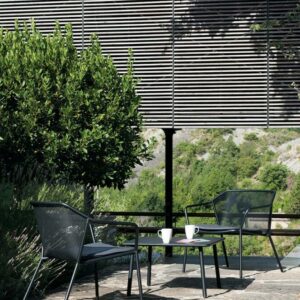 Die ergonomischen Proportionen und die Leichtigkeit der Strukturlinien sorgen für Komfort und Anpassungsfähigkeit. Darwin ist eine Stahlkollektion, die sich durch eine zarte Blechstruktur, die in eine moderne geometrische Struktur eingefügt wird, auf klassische Themen bezieht. Die Wirkung der Textur von Sitzfläche und Rückenlehne ist das charakteristische Element des Stils dieser Kollektion, die gut mit den Strukturlinien harmoniert. Darwin ist eine komplette Familie bestehend aus Stühlen, Sesseln, Tischen, Hockern und Stehtischen, Liegen und niedrigen Tischen. Sie bestätigt sich als Einrichtungslinie mit intensivem Stil, die zu jeder Einrichtungssituation passt.Finishes Emu: