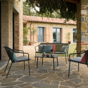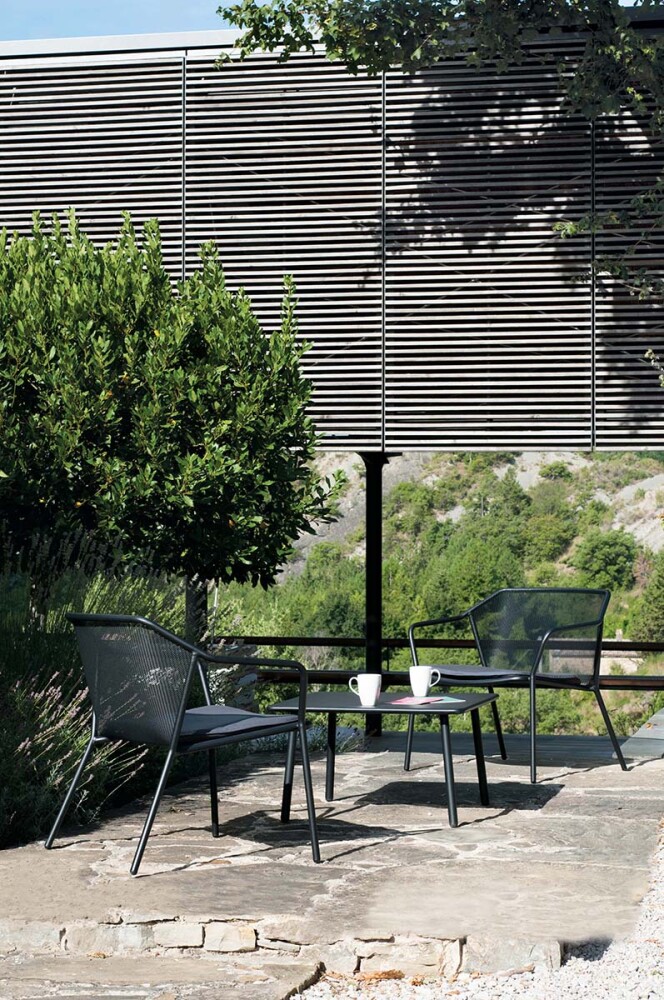 EMU DARWIN 526 ist ein Couchtisch mit lackierter Stahlstruktur und lackierter, vorfeuerverzinkter Blechplatte . Der Stahl ist durch eine Kataphorese- Oberflächenbehandlung geschützt .