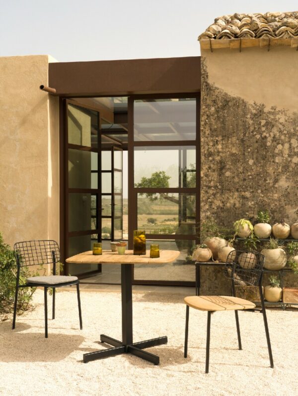 Die natürliche und edle Note des Teakholzes ergänzt das charakteristische Design des Produkts und ermöglicht so einen umfassenderen Einsatz auch im Innenbereich.