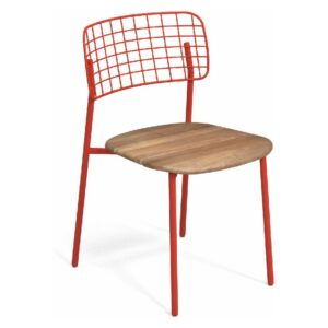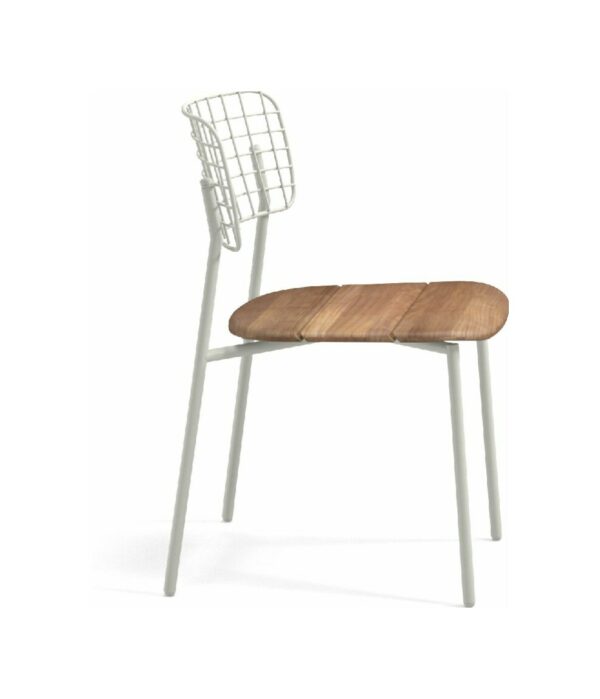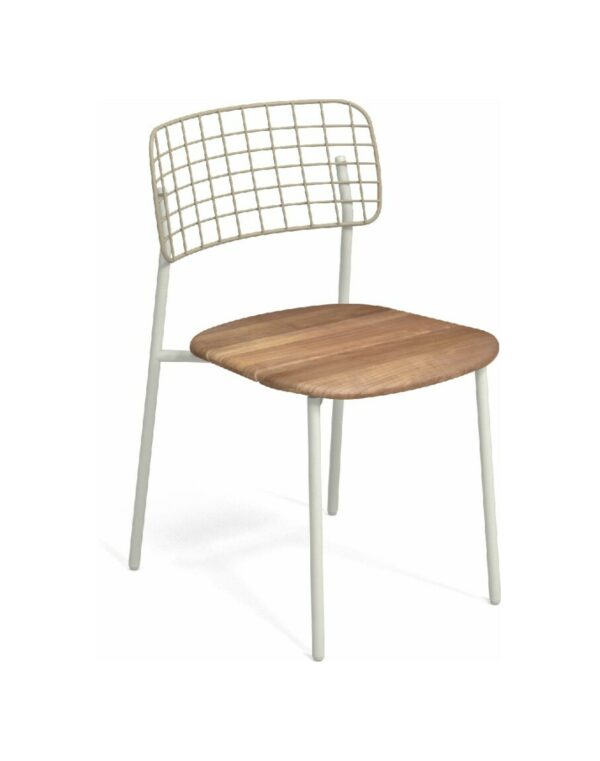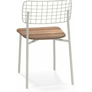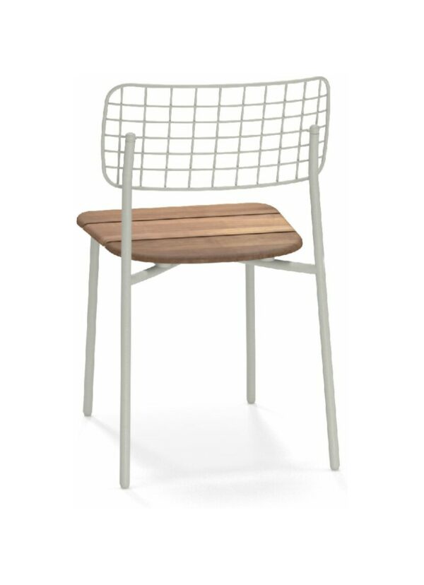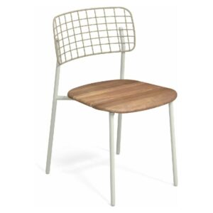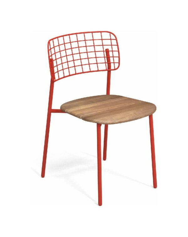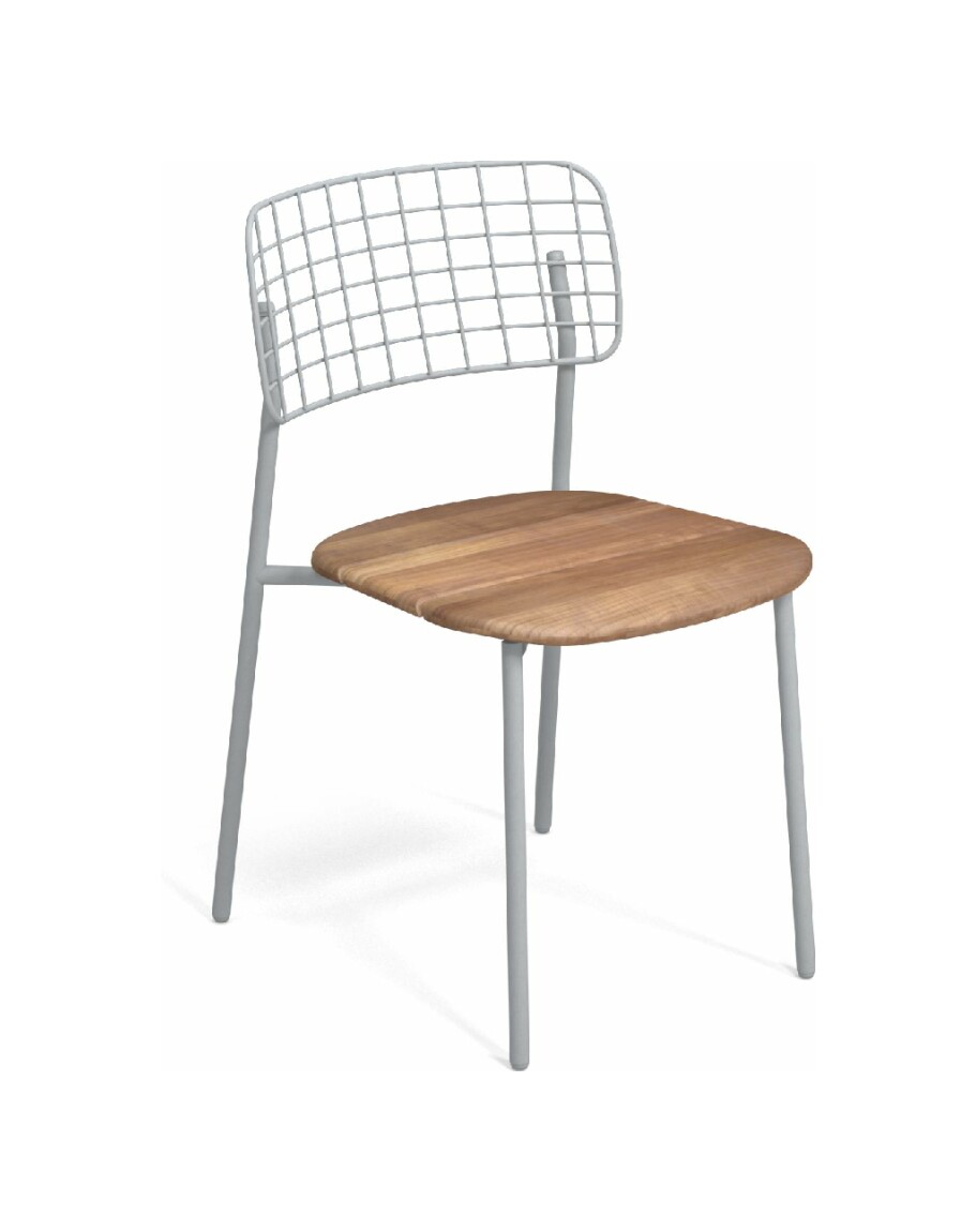 EMU LYZE 615/615-T ist ein Stuhl mit lackierter Aluminiumstruktur und Sitzfläche aus lackiertem Aluminium und Teakholz .