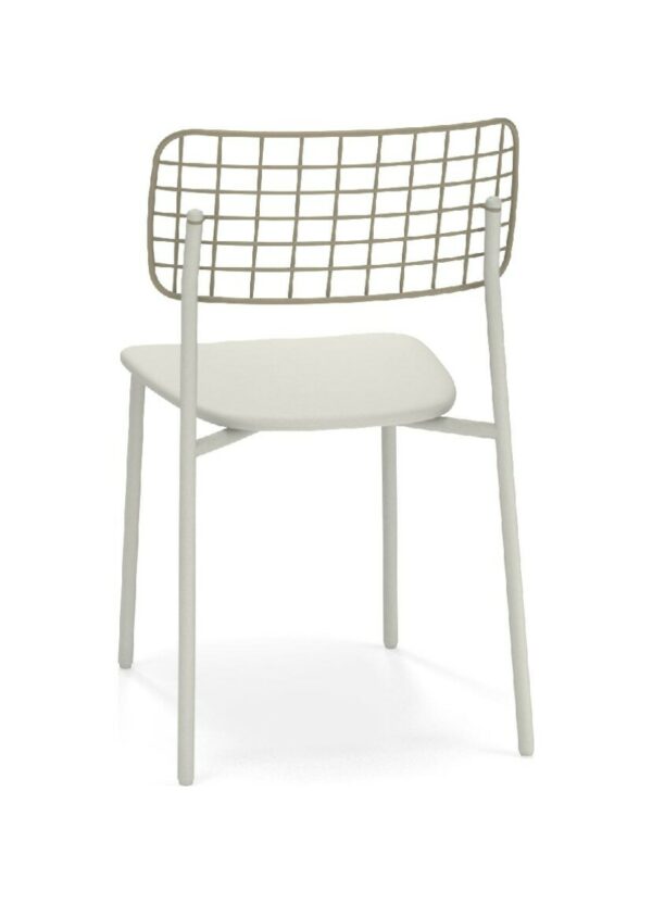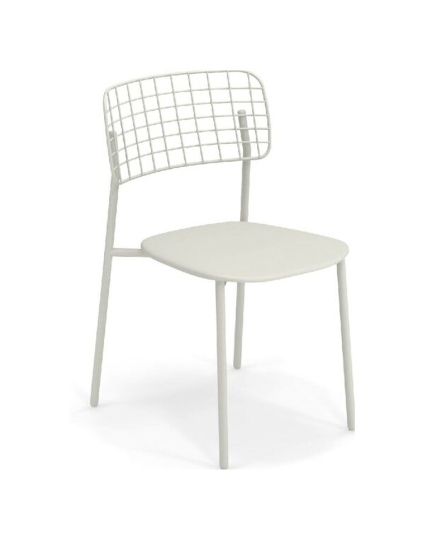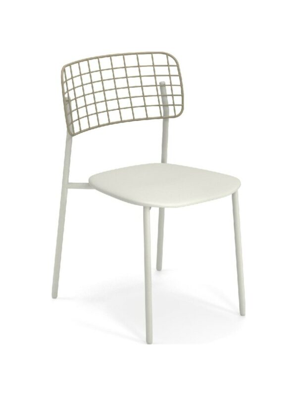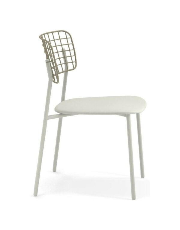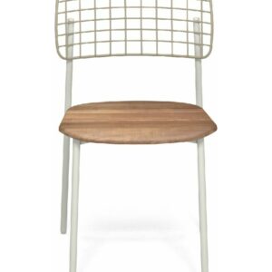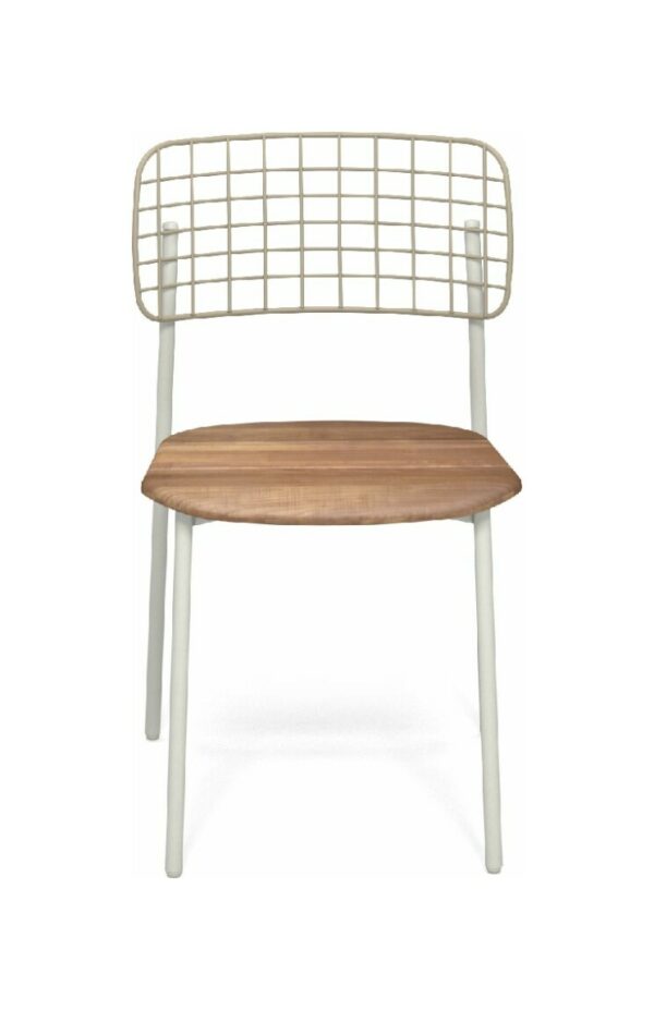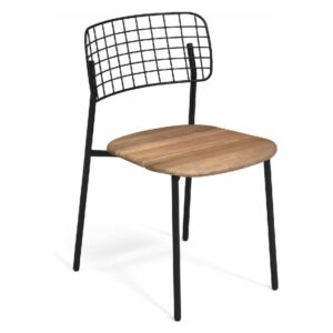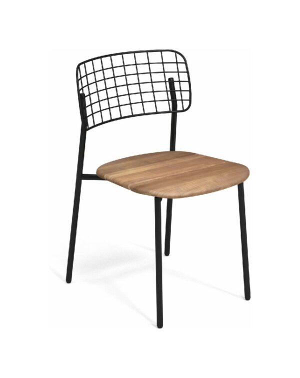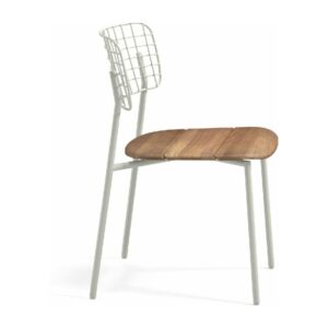 EMU LYZE 615/615-T ist ein Stuhl mit lackierter Aluminiumstruktur und Sitzfläche aus lackiertem Aluminium und Teakholz .