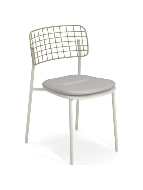 Der Stuhl ist in verschiedenen Farben erhältlich, bis zu 6 Stück stapelbar und optional mit Sitzkissen.