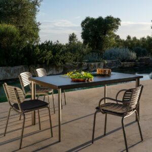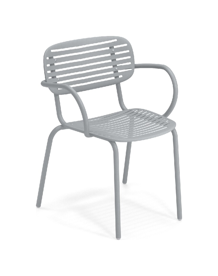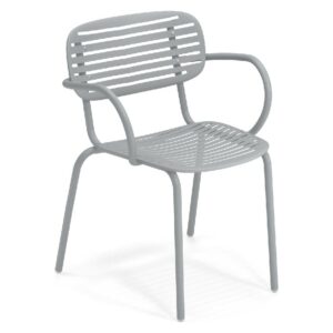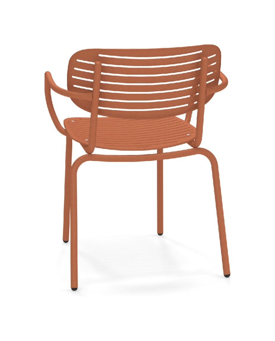 Der Stuhl Emu 639/640 aus der Mom-Kollektion hat eine schlichte und Vintage-Linie, die sich jeder Umgebung anpasst; Der Sitz und die Rückenlehne sind witterungsbeständig behandelt und für mehr Sitzkomfort geformt.