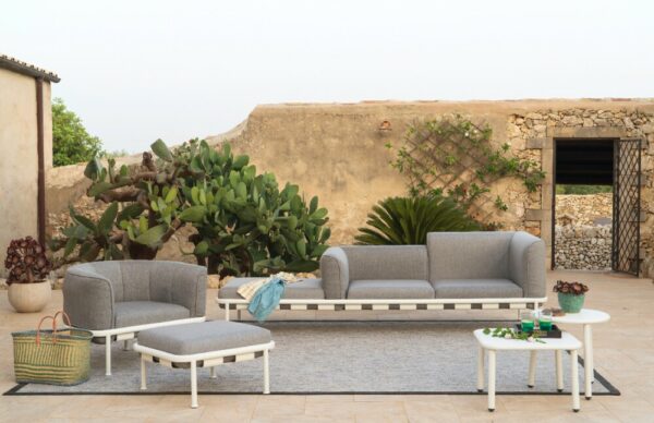 Die Dock-Kollektion besteht aus modularen Elementen, die sich einfach zusammenbauen lassen und dank des schlichten und eleganten Designs ideal sind, um jeden Raum auf einladende Weise zu personalisieren. Die vielfältigen Kombinationsmöglichkeiten machen Dock zu einer abwechslungsreichen Kollektion mit mehreren Konfigurationen. Sessel und Sofa in verschiedenen Größen sind nur einige der raffinierten und eleganten Elemente, die Sie mit Dock mit extremer Einfachheit erstellen können. Die Fußgestelle und Rückenlehnen aus Aluminium in unterschiedlichen Höhen ermöglichen vielfältige Kombinationsmöglichkeiten für ein allumfassendes Dekor, das mit eleganten, wasserabweisenden, gepolsterten Kissen verschönert wird.Finishes Emu: