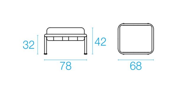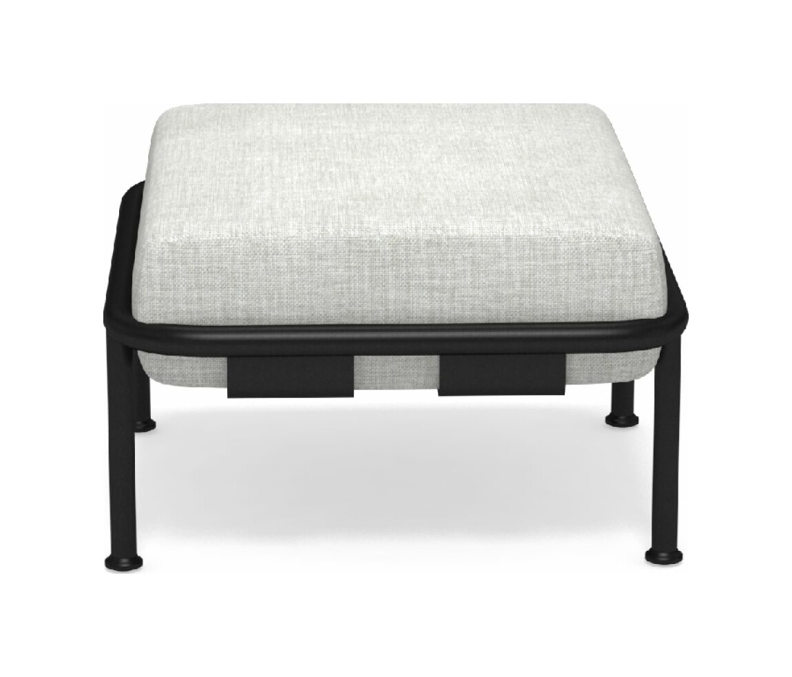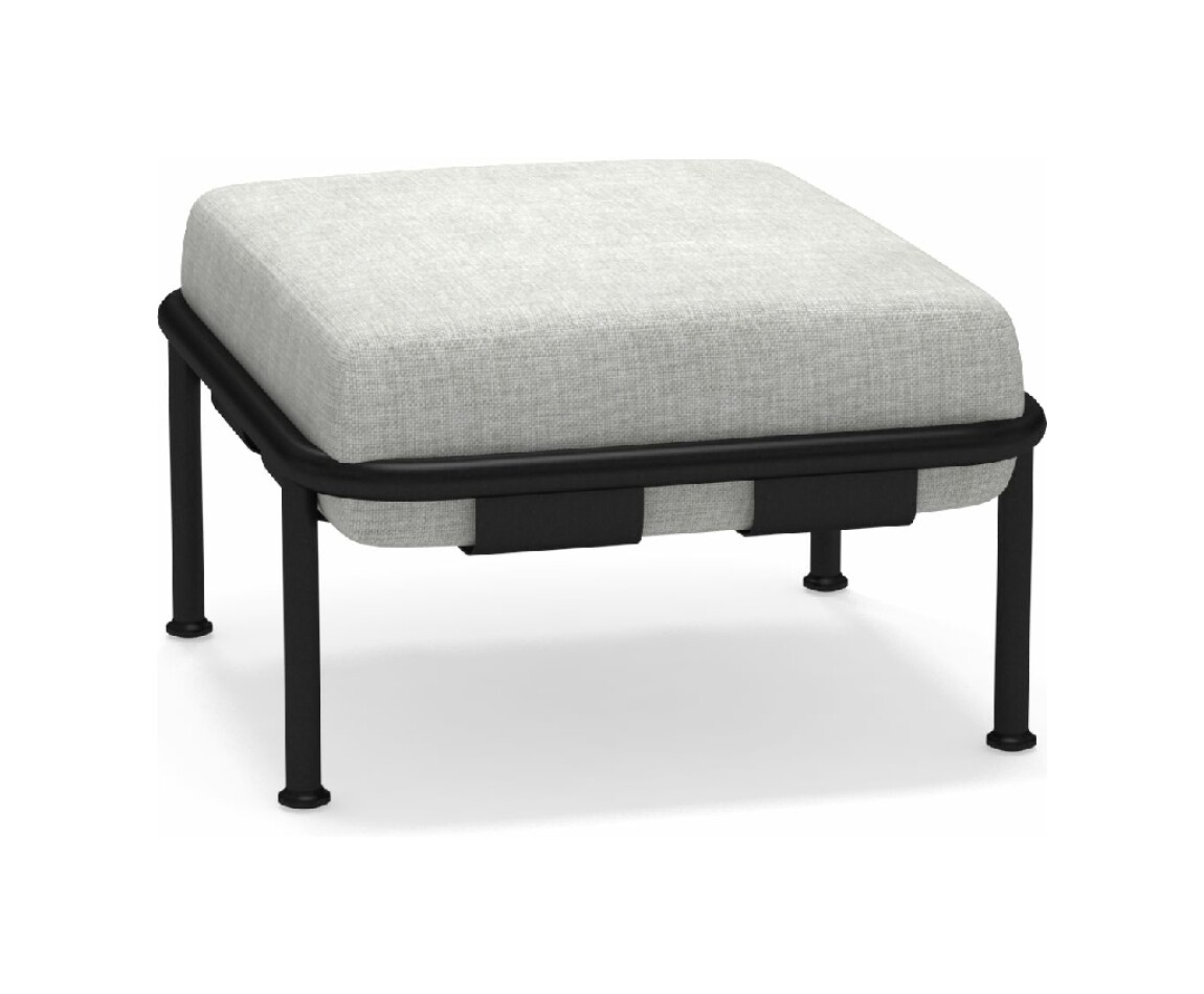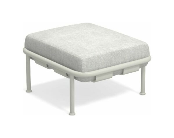 EMU DOCK 745 ist ein Hocker mit Rohr- und Aluminiumblechstruktur , einschließlich Kissen aus wasserabweisendem Stoff/Polypropylen.