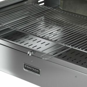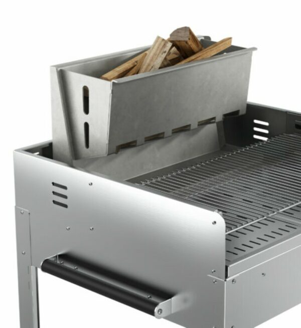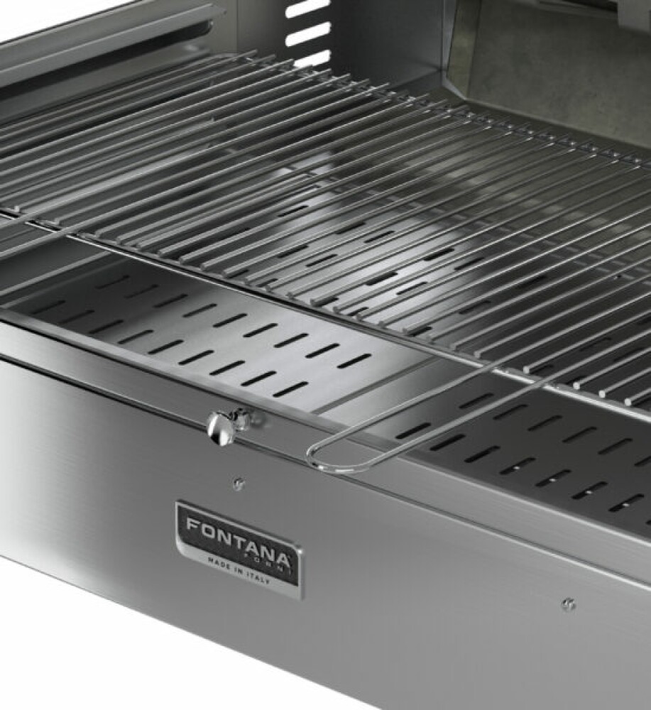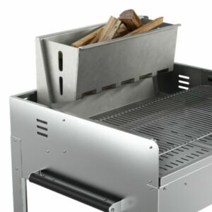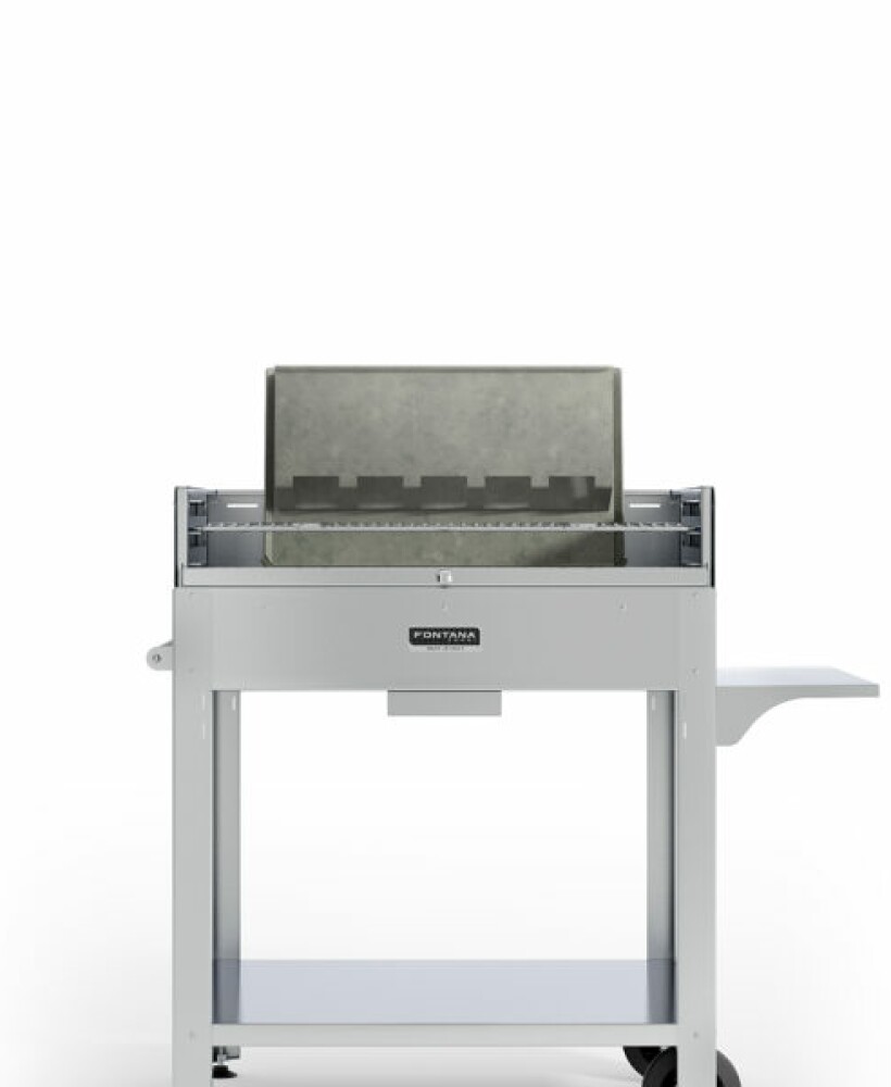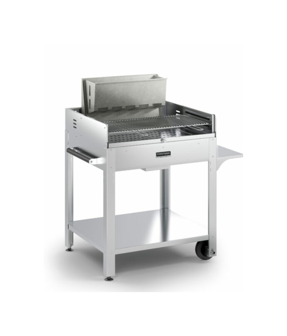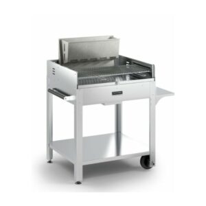 Offener Grill, dessen Struktur komplett aus Edelstahl besteht, ausgestattet mit zwei bequemen Rädern und einer praktischen, platzsparenden, klappbaren Seitenauflagefläche . Der Grillrost hat eine Größe von 80×40 cm und kann in zwei Höhen positioniert werden. Den Tirreno Barbecue gibt es auch in der freistehenden Variante.