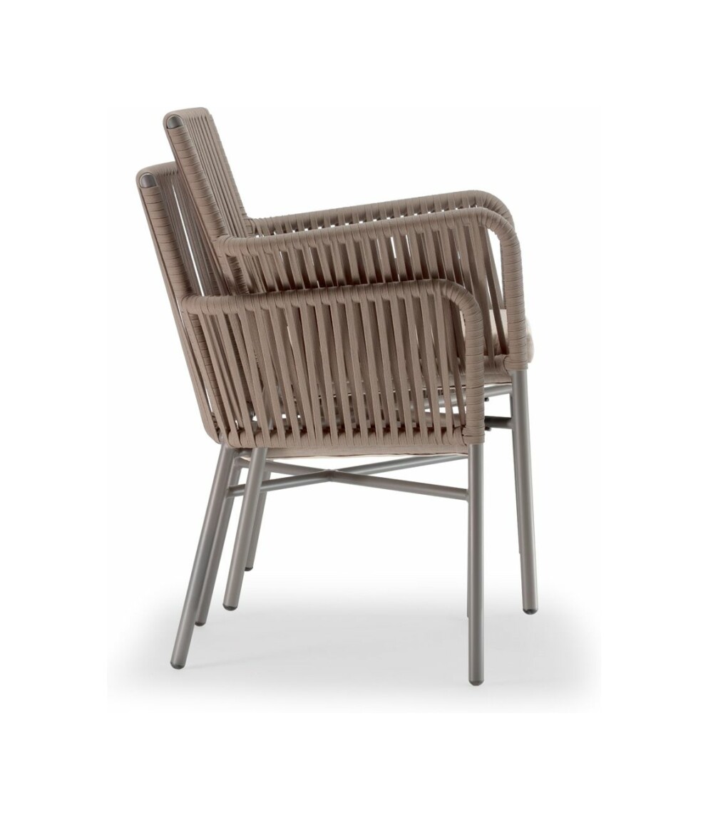 Antibes von Grattoni ist ein stapelbarer Design-Sessel, der sich perfekt für die Schaffung einer eleganten und funktionalen Entspannungsecke eignet.