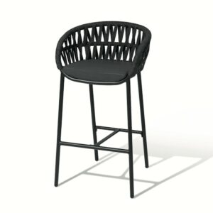 Die schwarze Aluminiumstruktur ist mit dunkelgrauem Polyolefinstoff bezogen und wird durch ein bequemes Kissen aus schwarzem Textilene-Mischgewebe ergänzt.