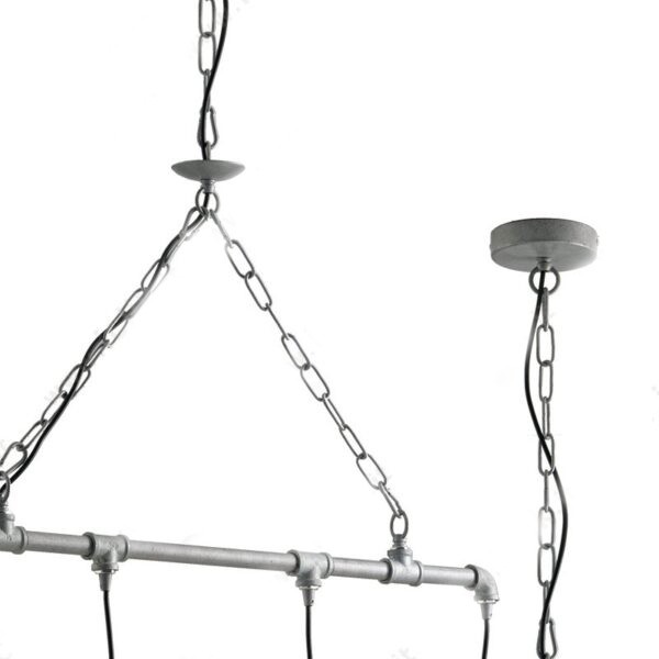 Diese Lampe ist rein industriell inspiriert und basiert auf den Wasserleitungen in den alten Fabriken. So wird ein einfaches Funktionselement zu einer besonderen Designdekoration . Der verzinkte Effekt verleiht diesem Beleuchtungselement eine antike, aber gleichzeitig wertvolle Note. Die perfekte Ergänzung zu den Räumen in Ihrem Zuhause, die Sie hell und extravagant gestalten möchten. Es können bis zu vier Lampen mit E27-Fassung (maximal 60 W) montiert werden.