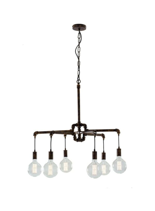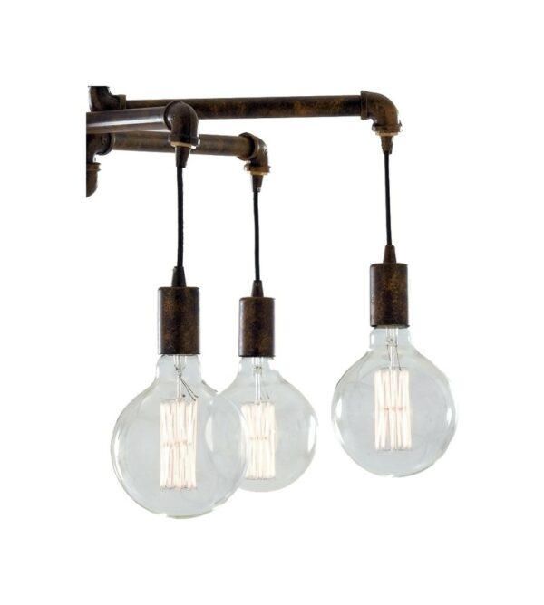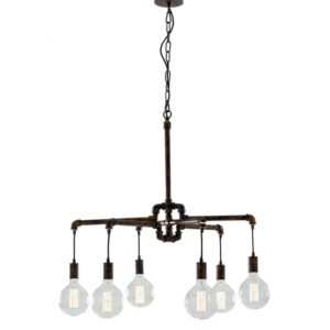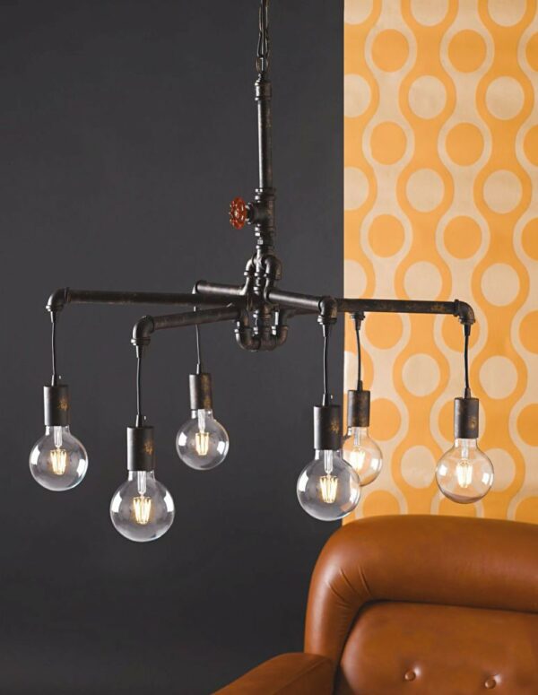 Diese Lampe ist rein industriell inspiriert und basiert auf den Wasserleitungen in den alten Fabriken. Sie verfügt über ein Ventil zur Steuerung des Wasserflusses und macht ein einfaches Funktionselement zu einer besonderen Designdekoration . Der Rosteffekt verleiht diesem Beleuchtungselement eine antike, aber gleichzeitig wertvolle Note. Die perfekte Ergänzung zu den Räumen in Ihrem Zuhause, die Sie hell und extravagant gestalten möchten. Es montiert bis zu sechs Lampen mit E27-Fassung, maximal 60W.