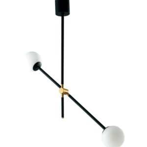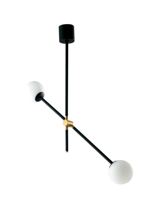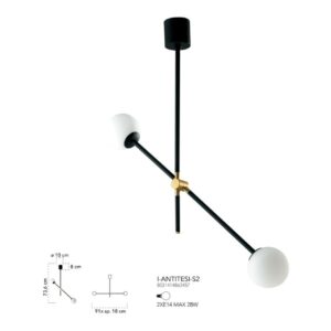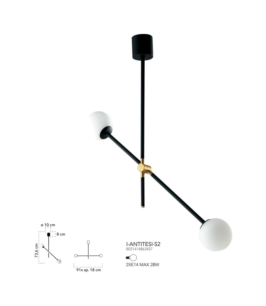 I-antitesi-S2 antitesi Sammlung von Ambient Light Design ist eine schwarzes Hängelampe aus Metall und gebürstetem Gold mit opal geblasenem Glas Diffusoren.