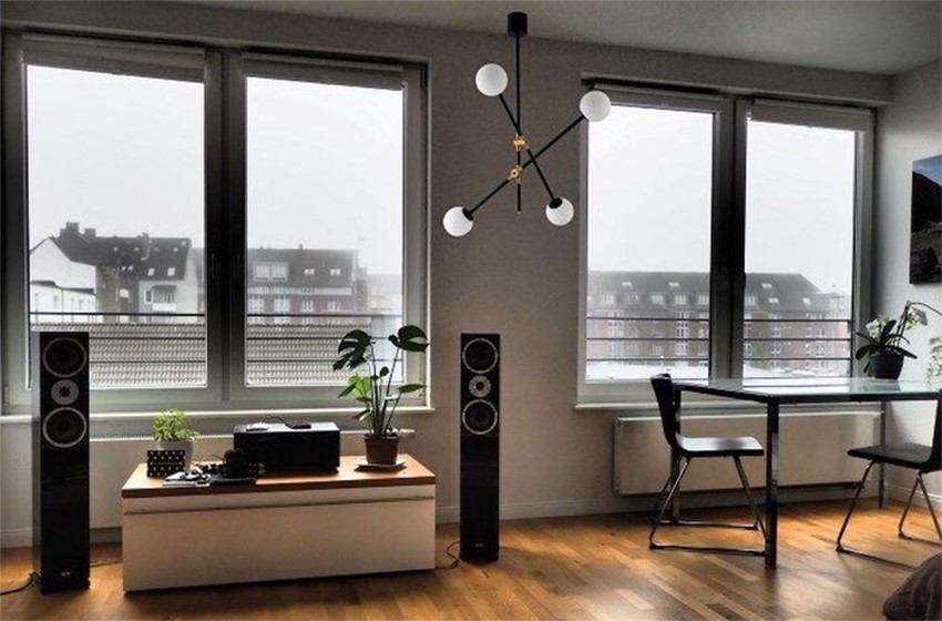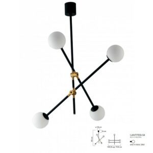 Die Besonderheit dieser Lampe wird durch die beiden goldenen und verstellbaren Mittelgelenke des Lampenstiels gegeben, die es ermöglichen, den beiden Armen dieser Lampe, an denen die Lampen und Diffusoren angebracht sind, unterschiedliche Richtungen zu geben. Diese Lampe ist hochgradig anpassbar und für Ihren Raum konfigurierbar. Sie können jederzeit verschiedene Bilder erstellen. Minimal und modern , stellt es einen lustigen Lichtpunkt dar, der für diejenigen geeignet ist, die der Küche und nicht dem Schlafzimmer einen kreativen Touch verleihen möchten. Passend für bis zu vier E14-Lampen, maximal 38W.