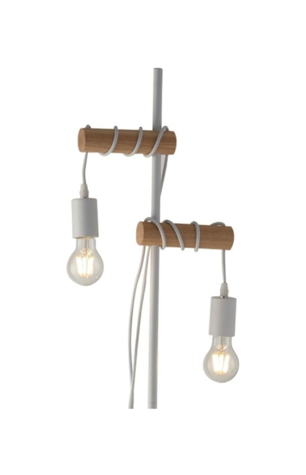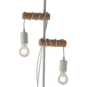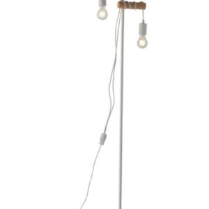 I-ARIZONA-PT2 aus der Arizona- Kollektion von Luce Ambiente Design ist eine Stehlampe mit Struktur aus mattem Weißmetall und Details aus kiefernfarbenem Holz .