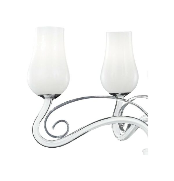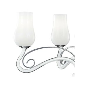 I-ANGEL / 5 aus der Engel – Kollektion von Luce Ambiente Design ist ein Glas – Kronleuchter in mundgeblasenem Paste, mit transparentem Pastoralen und verchromten Details.