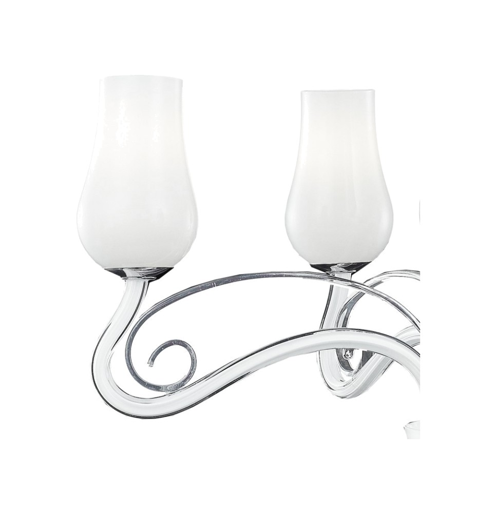 Material : Sammlung aus weißem mundgeblasenem Glas mit transparenten Pastoralen und verchromten Details;