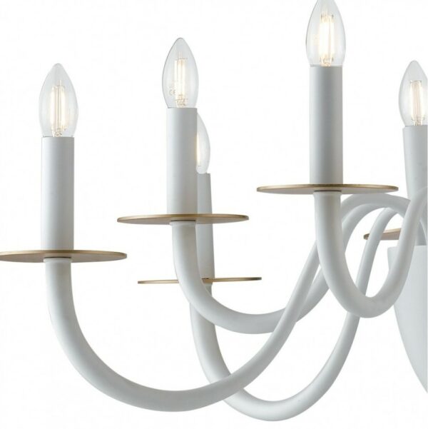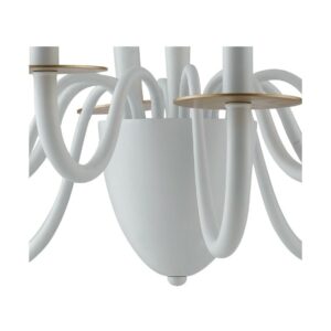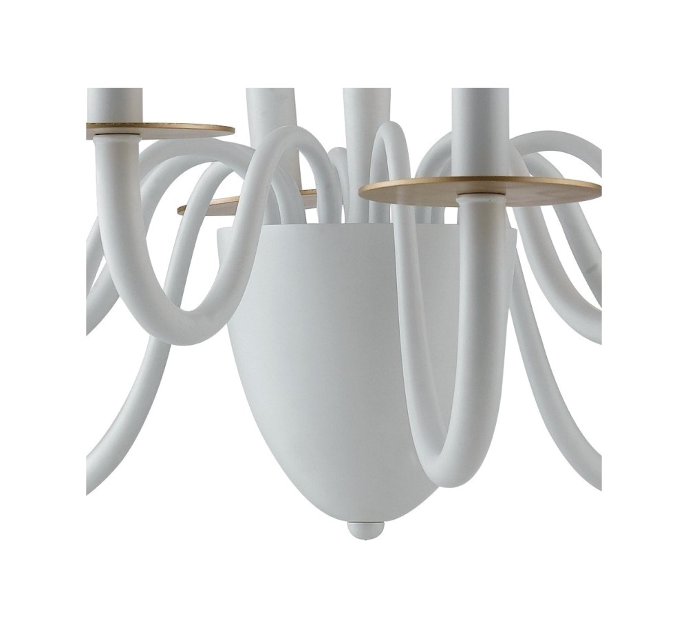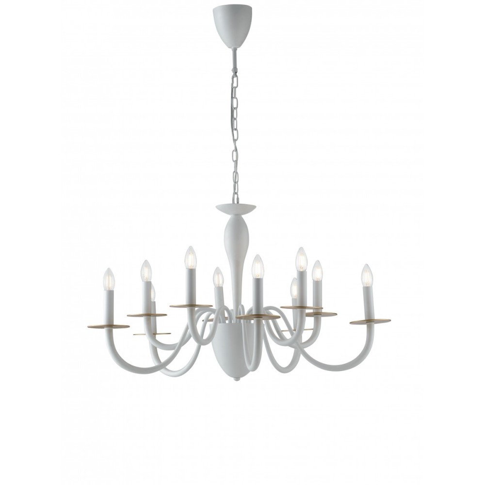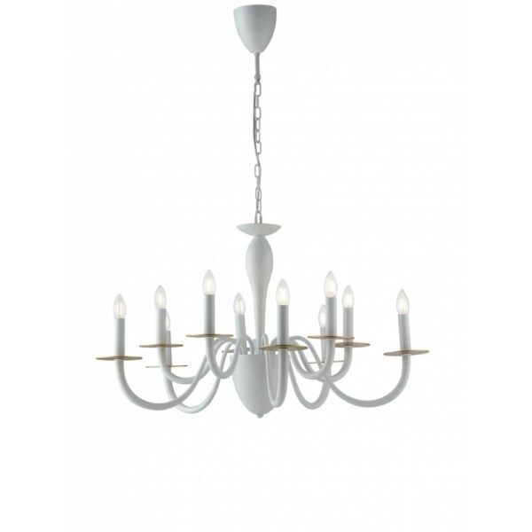I-ARMSTRONG / 10 BCO aus der Armstrong- Kollektion von Luce Ambiente Design ist ein Kronleuchter aus weißem Metall mit satinierten Golddetails .