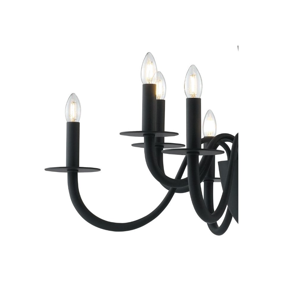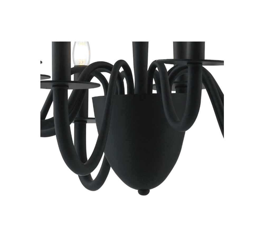 I-ARMSTRONG / 10 NER aus der Armstrong – Kollektion von Luce Ambiente Design ist ein schwarzes Metall Kronleuchter mit Satin Gold Details.