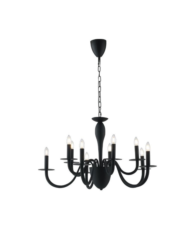 Ein Produkt für die Beleuchtung Ihres Hauses – besonders geeignet für Innenräume – mit beeindruckenden Abmessungen . Geeignet für geräumige Zimmer, kann es dem Innenraum eine elegante und raffinierte Note verleihen. Obwohl sein Design an einen klassischen mehrarmigen Kronleuchter erinnert, ist dieser moderne Kronleuchter aufgrund der Materialauswahl und der Farbkombination für jede Art von Einrichtung geeignet. Besonders hervorzuheben sind die Details , die diesen Lichtpunkt ausmachen, wie die Krümmung der Arme des Kronleuchters und die kerzenförmigen Lichter, die eine besondere Atmosphäre in Ihrem Zuhause schaffen können. Es montiert bis zu zehn Lampen mit E14-Fassung, maximal 40W.