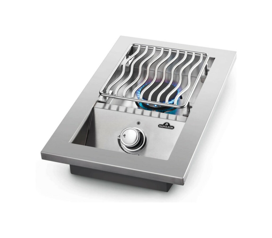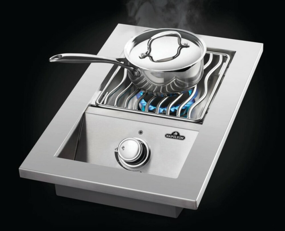 Ein einzelner Brenner bietet zusätzlichen Platz zum Zubereiten von Saucen und Beilagen während der Nutzung des Hauptgrills
