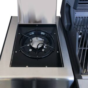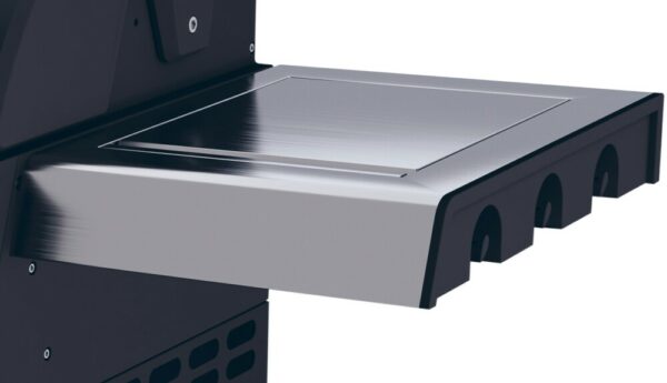 Klappbare Edelstahlregale mit Besteckhalter. Ausgestattet mit einem praktischen Seitenbrenner.