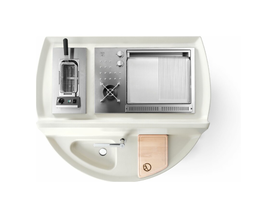 – Beinhaltet: Spüle – Mixer – Gas- oder Elektroherd – Fritteuse